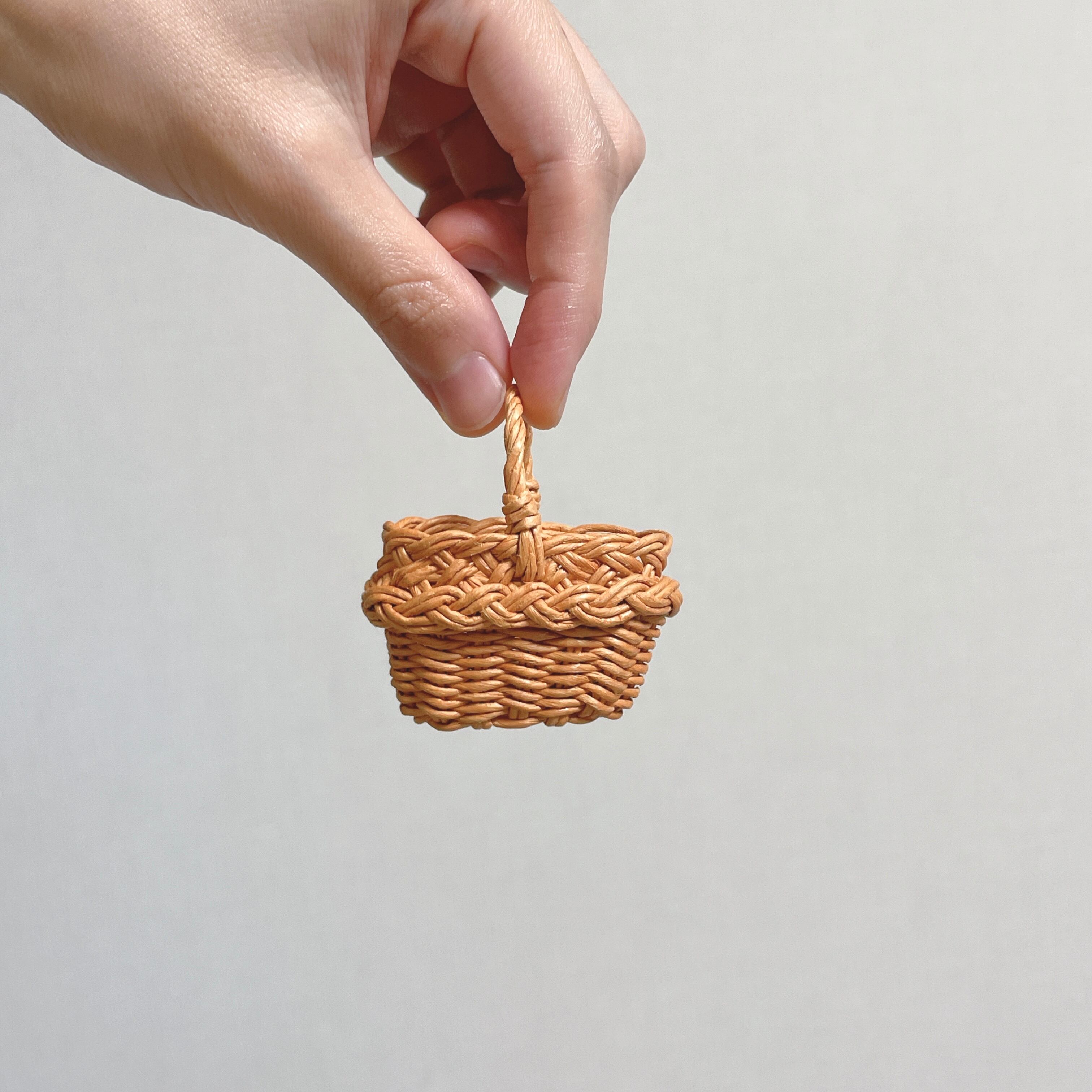 ◾️クラフトバンドを使って、ミニチュアのラタン風カゴバッグを作りました。細部までこだわって、丁寧に作り上げております。