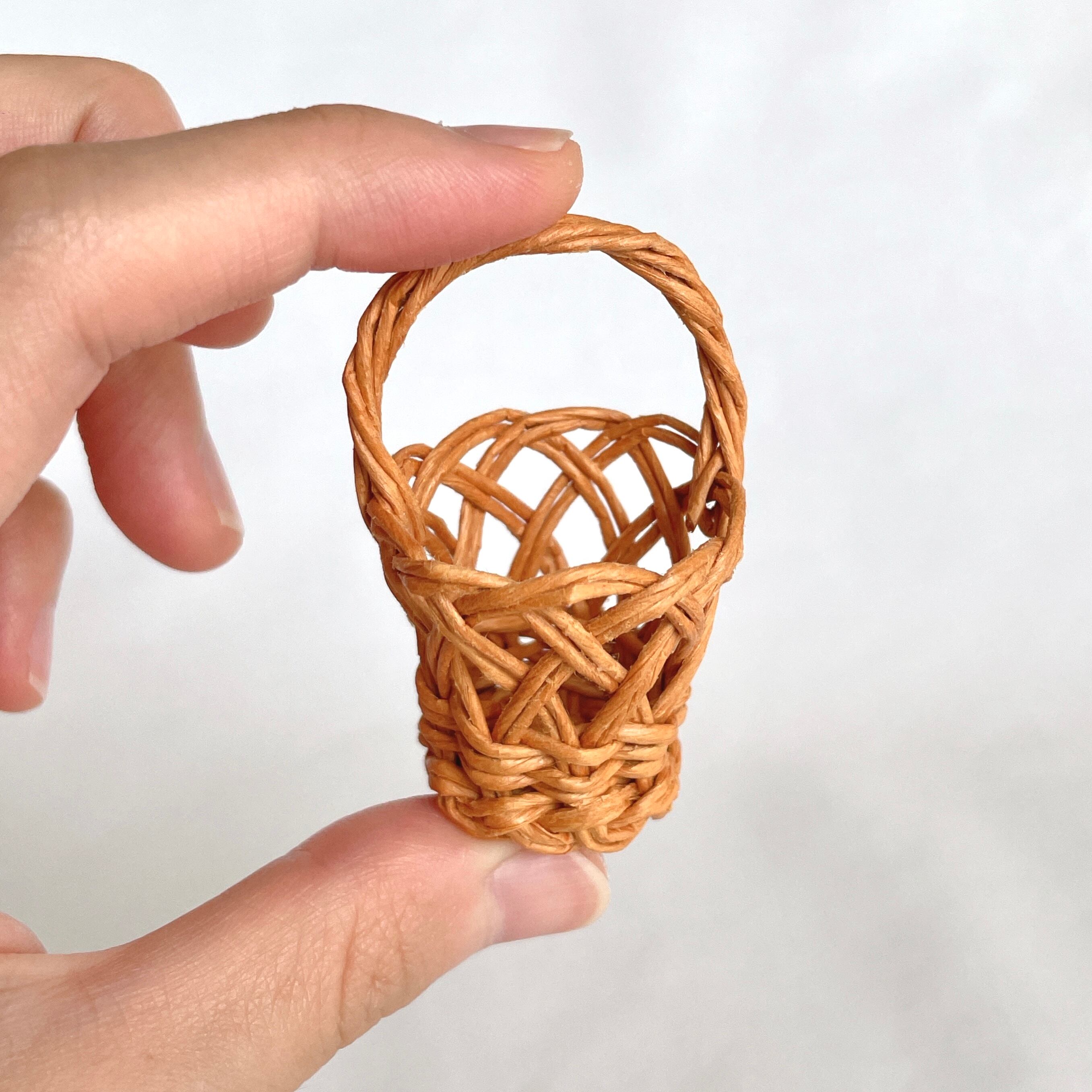 ◾️クラフトバンドを使って、ミニチュアの透かし編みカゴバッグを作りました。細部までこだわって、丁寧に作り上げております。見る角度によってさまざまな表情を楽しめます。