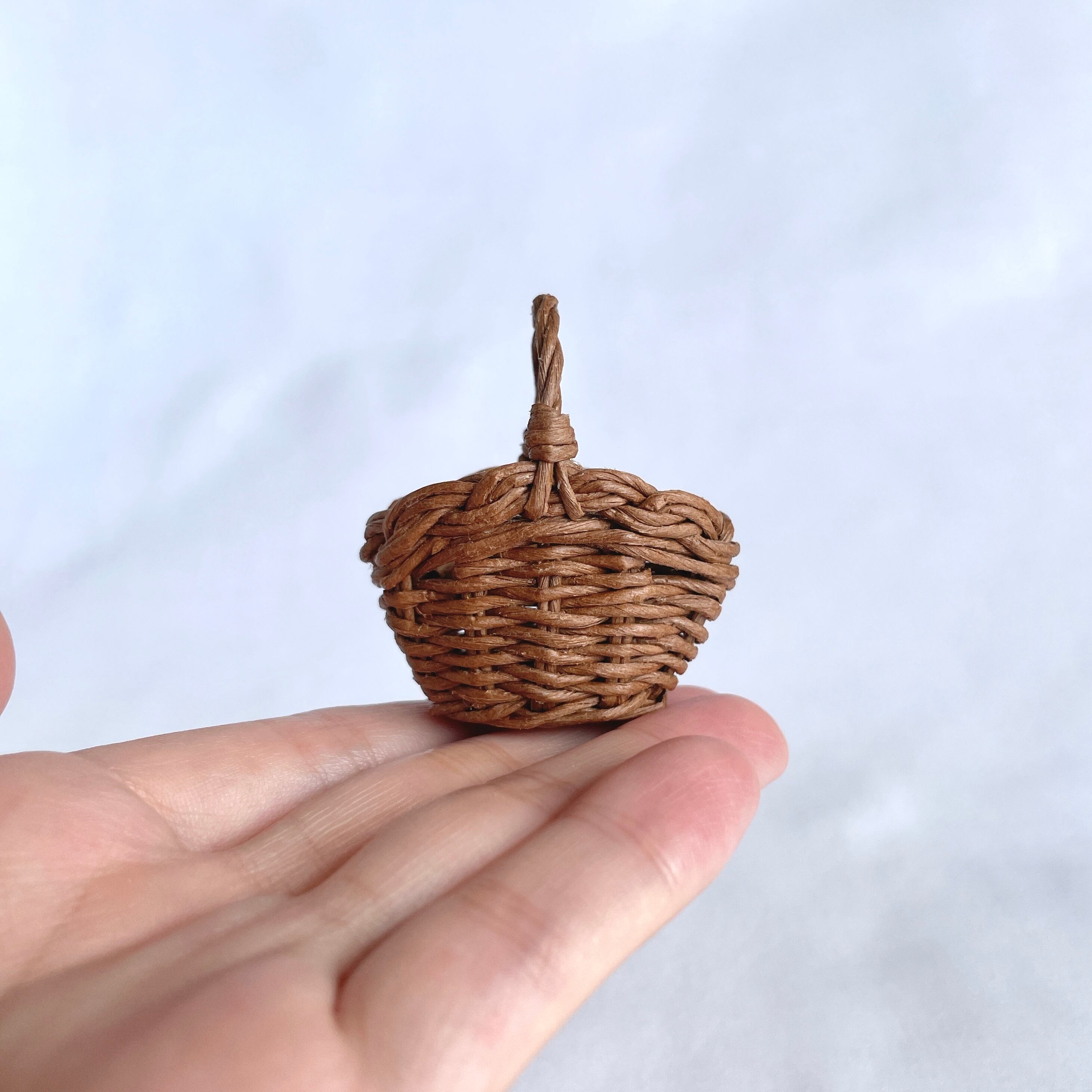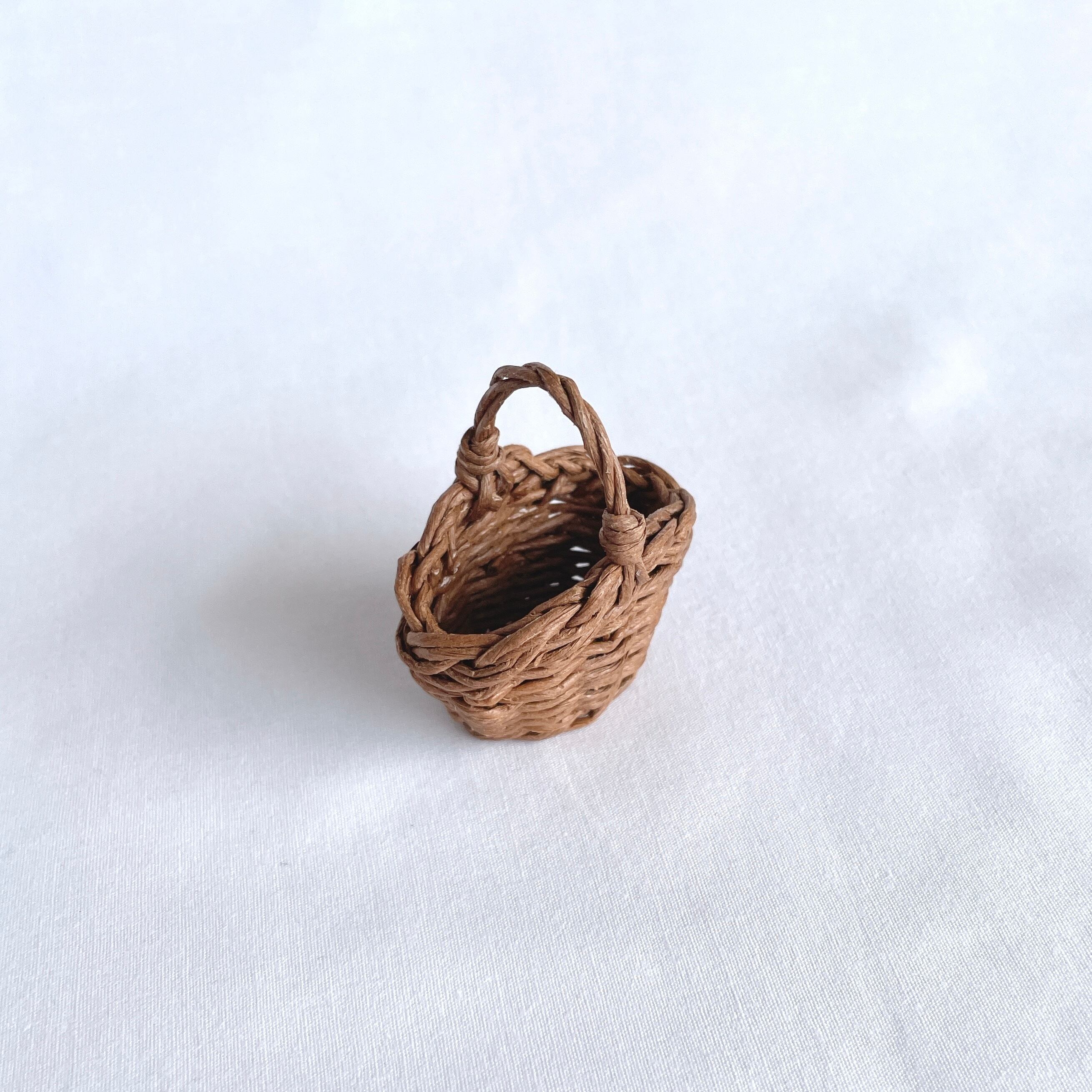 ◾️クラフトバンドを使って、ミニチュアのラタン風カゴバッグを編みました。細部までこだわって、丁寧に作り上げております。縁の表部分が三つ編み模様になっているところがポイントです。