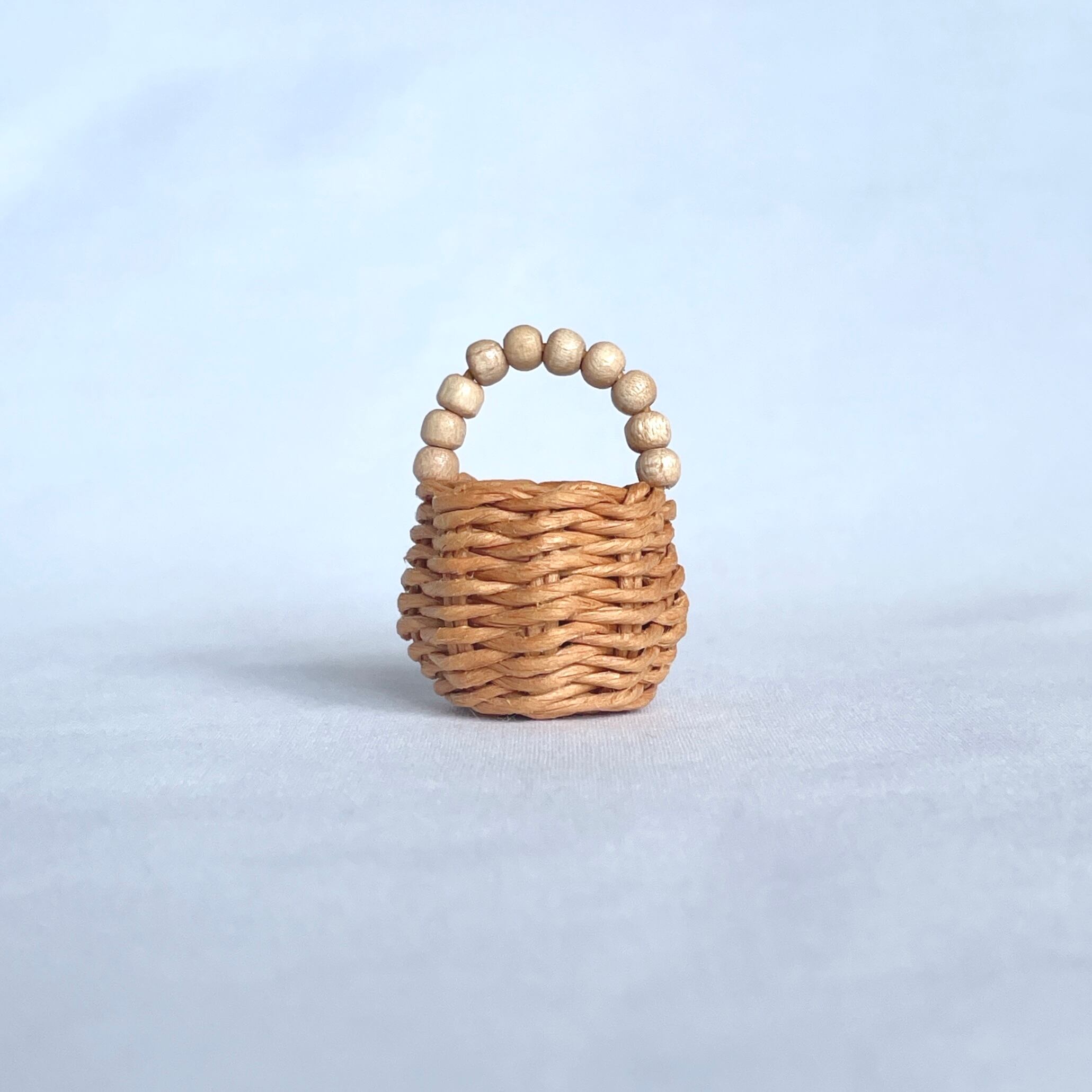 ミニチュア ウッドビーズハンドルカゴバッグ / Miniature Wood Beads Handle Basket / hinoki