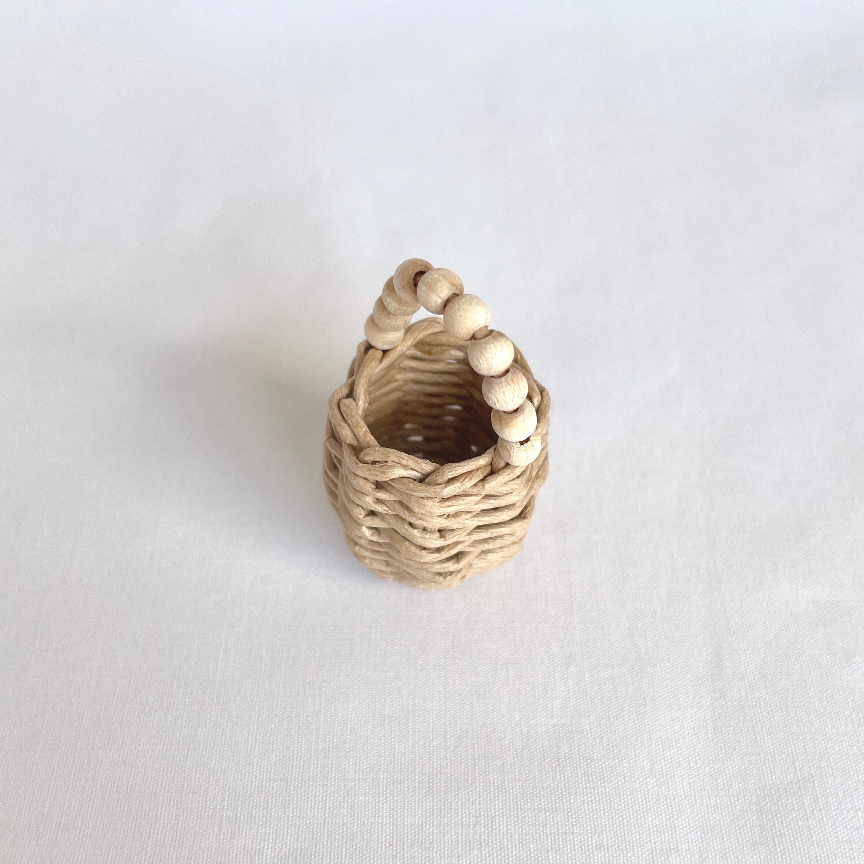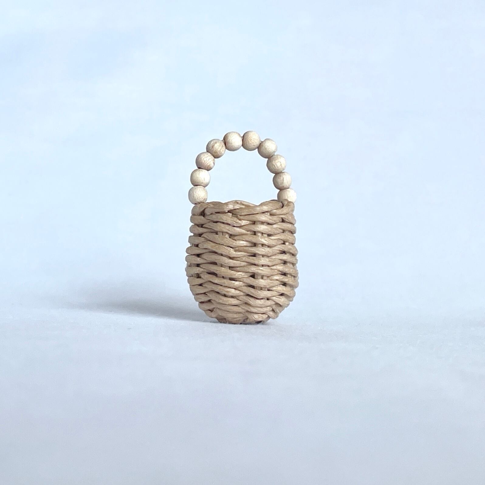 ミニチュア ウッドビーズハンドルカゴバッグ / Miniature Wood Beads Handle Basket / hinoki