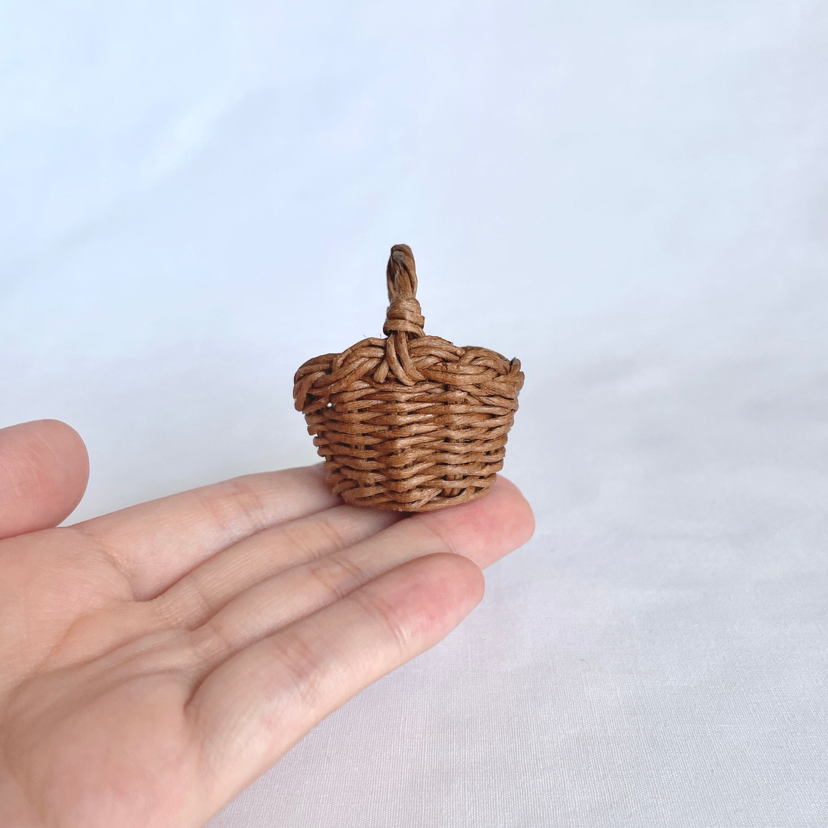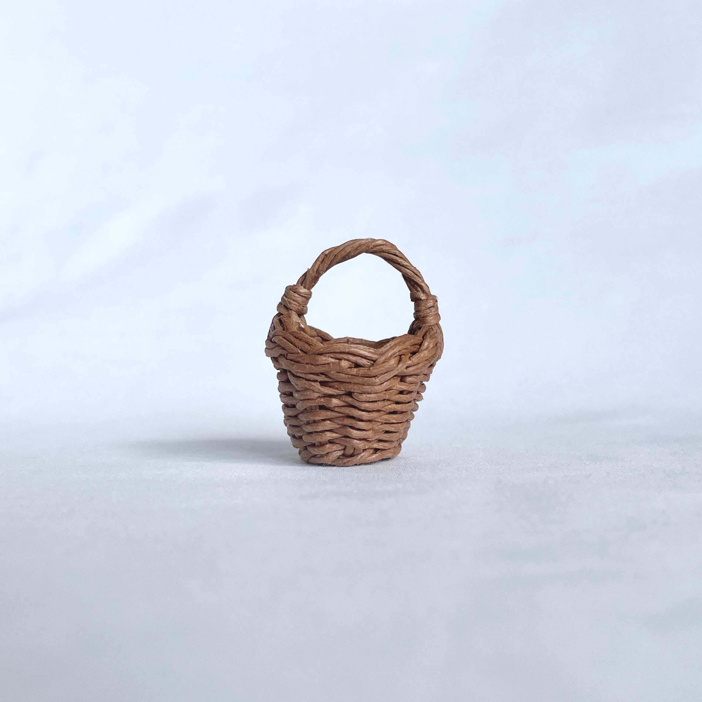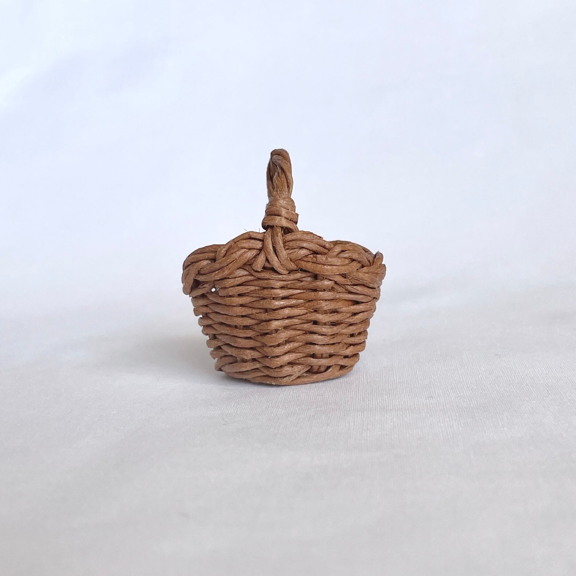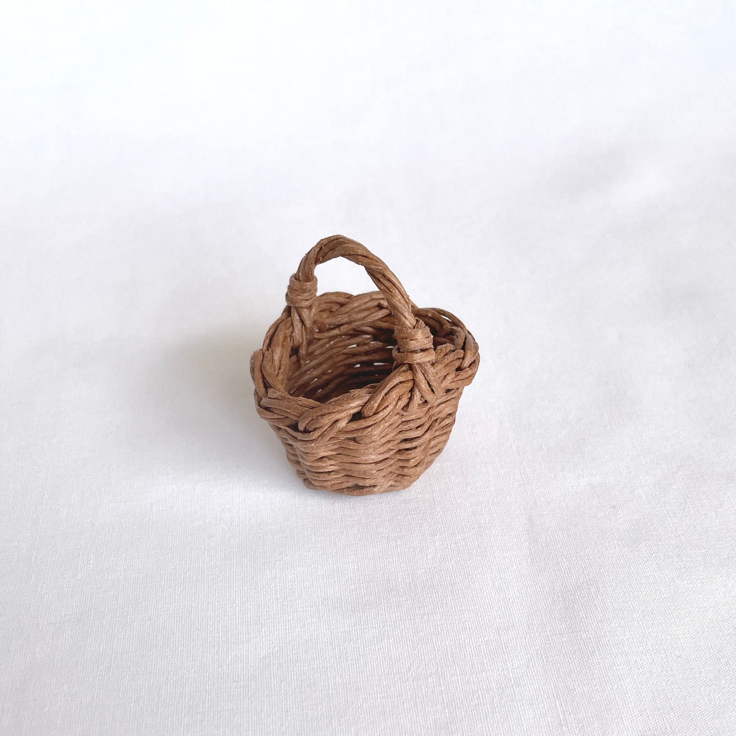 ◾️クラフトバンドを使って、ミニチュアのラタン風カゴバッグを編みました。細部までこだわって、丁寧に作り上げております。縁の表裏部分が三つ編み模様になっているところがポイントです。