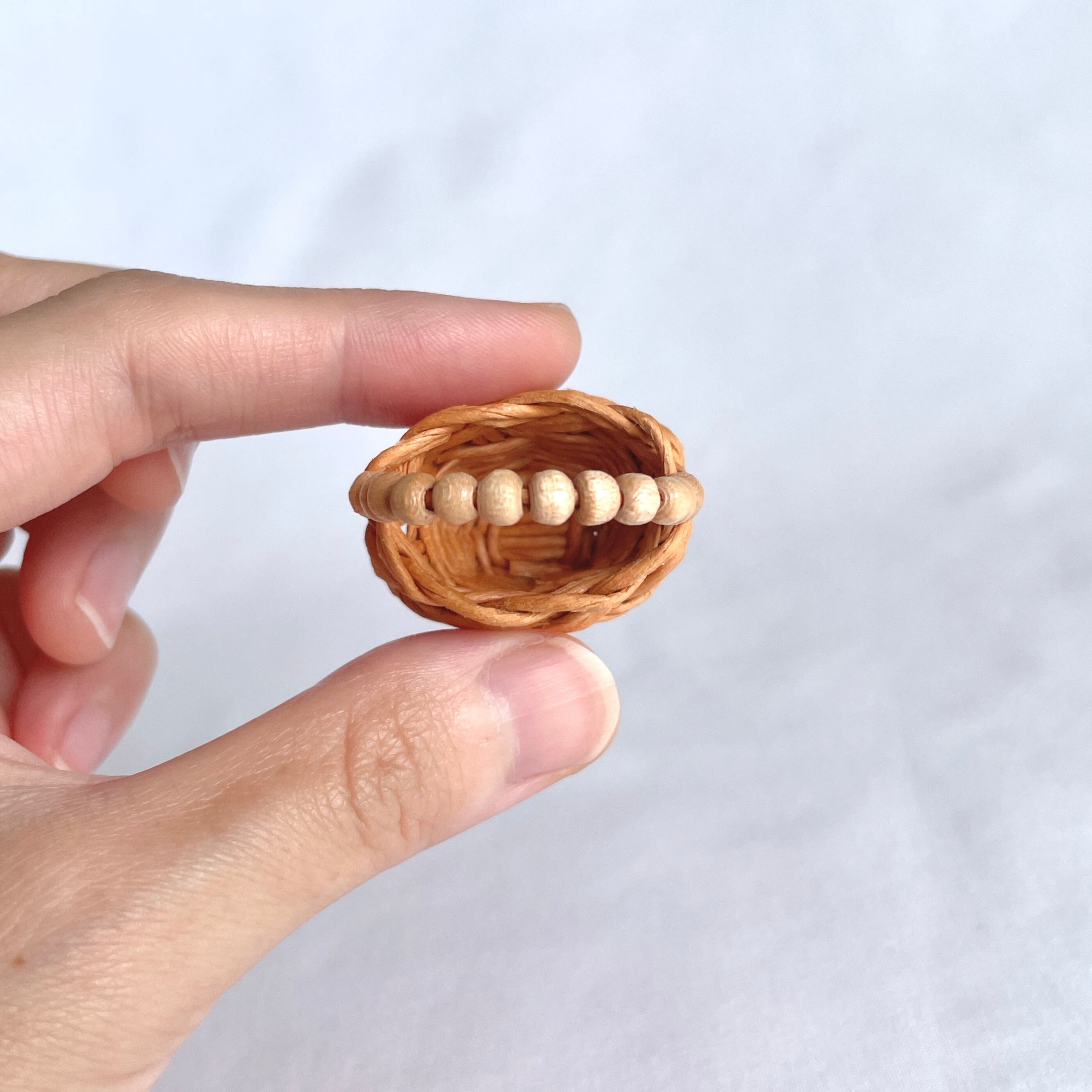 ミニチュア ウッドビーズハンドルカゴバッグ / Miniature Wood Beads Handle Basket / hinoki