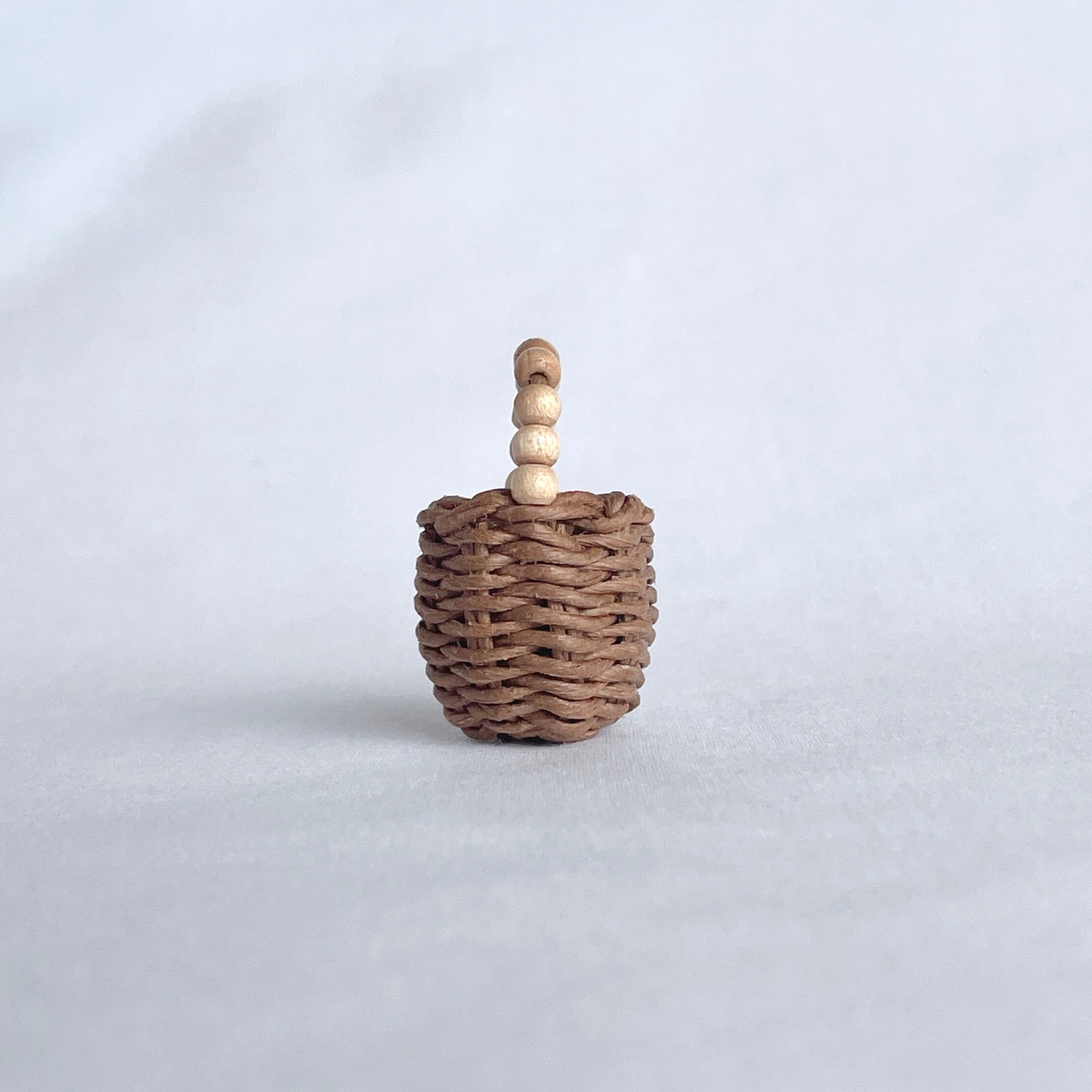 ミニチュア ウッドビーズハンドルカゴバッグ / Miniature Wood Beads Handle Basket / hinoki
