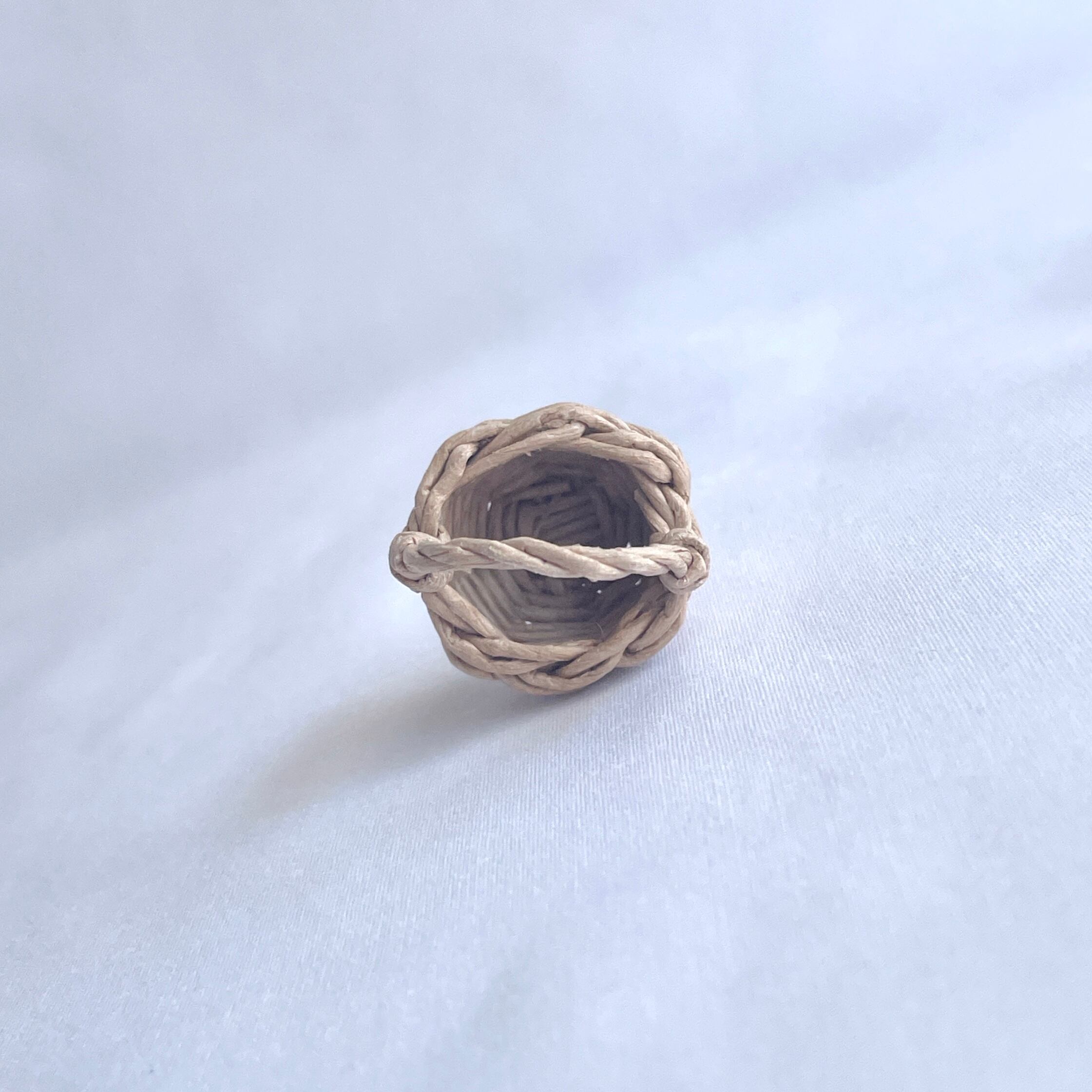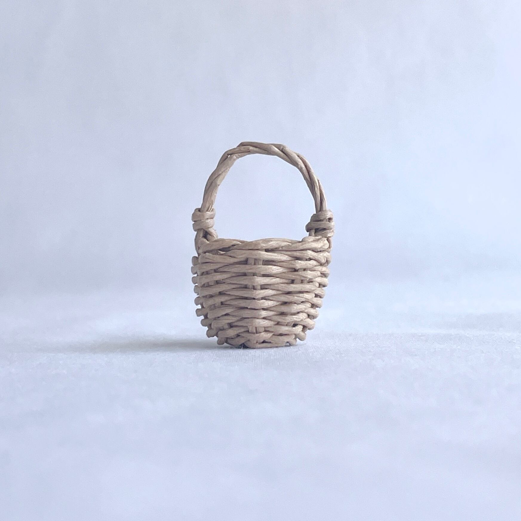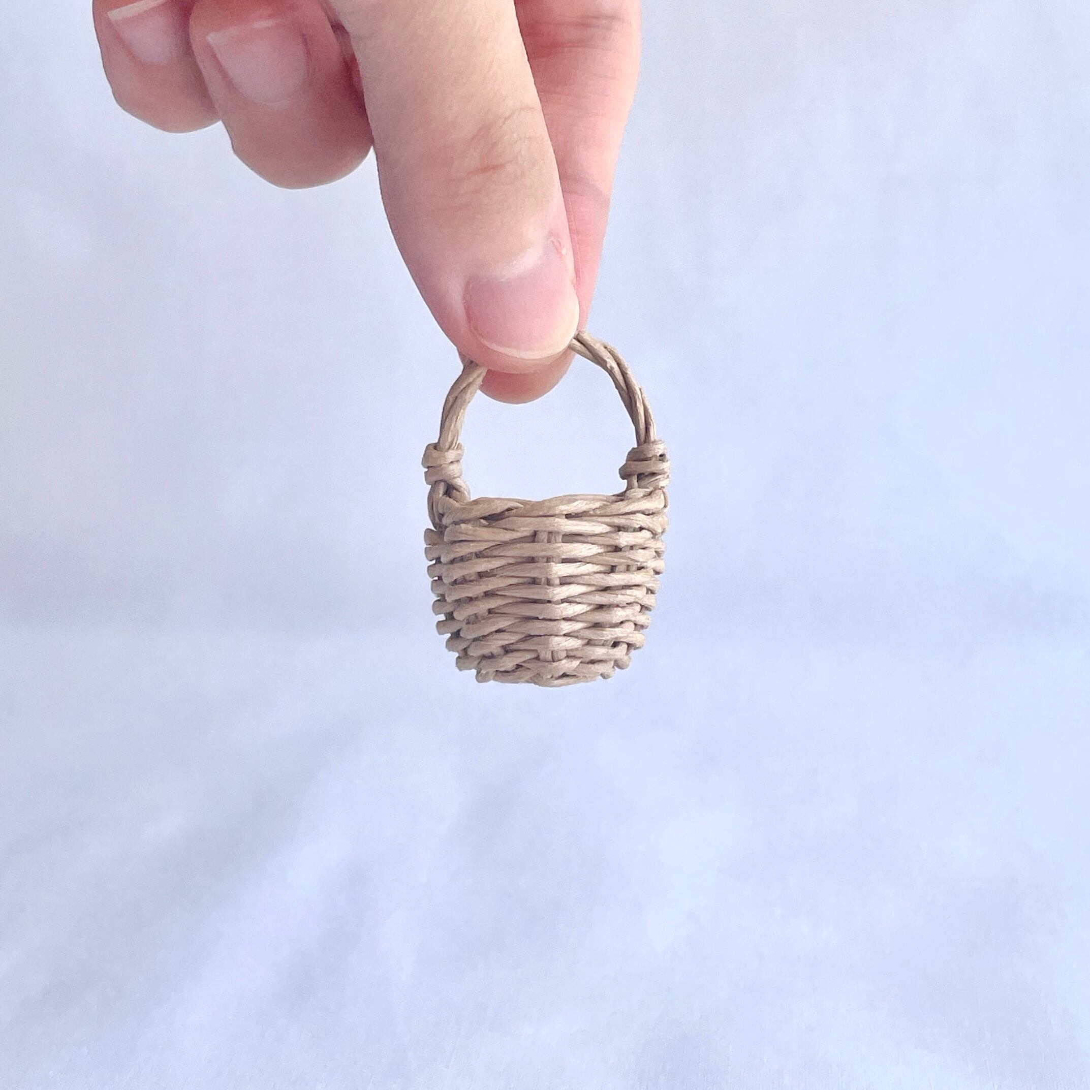◾️クラフトバンドを使って、ミニチュアのラタン風カゴバッグを編みました。細部までこだわって、丁寧に作り上げております。小さなサイズのシンプルな可愛らしいカゴバッグです。