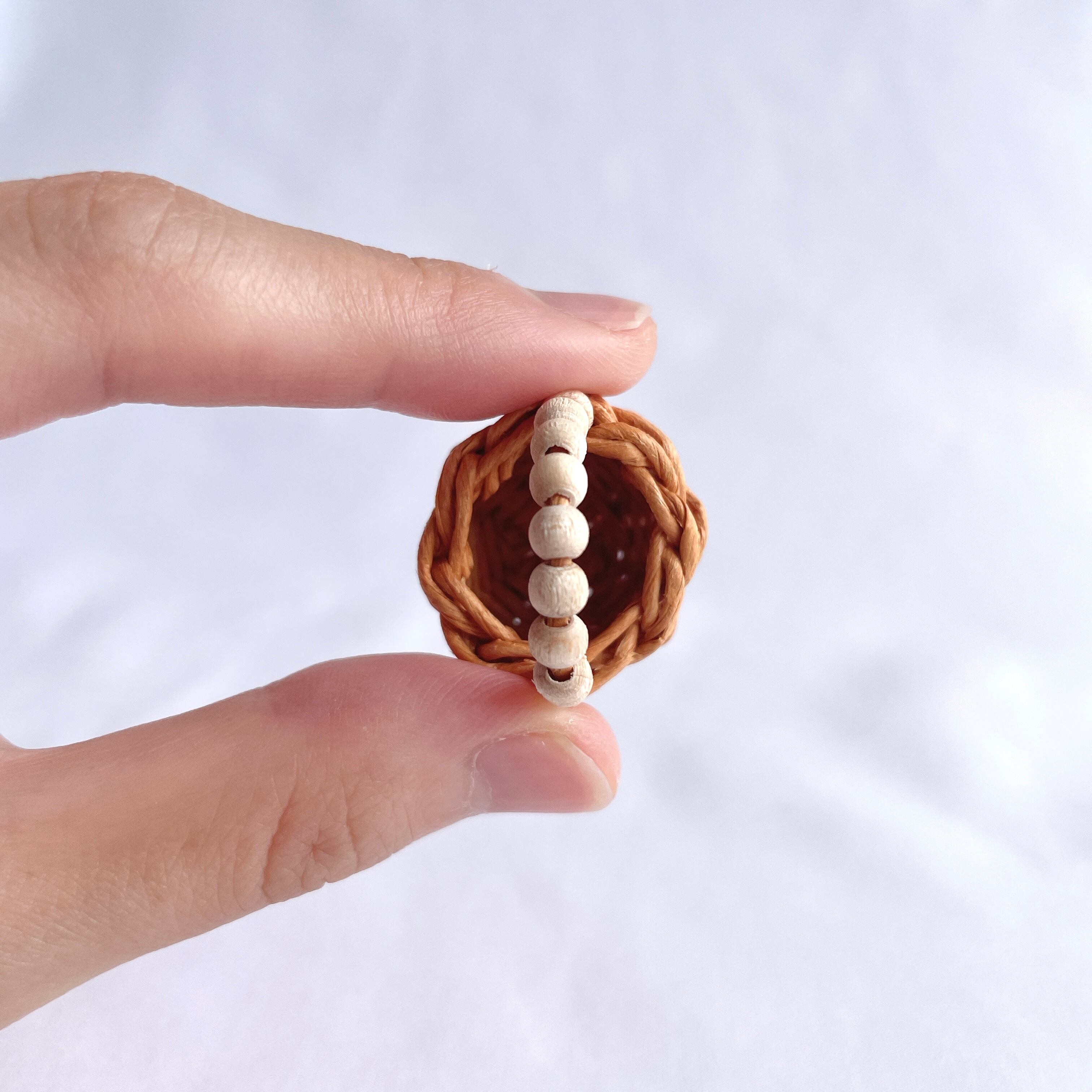 ミニチュア ウッドビーズハンドルカゴバッグ / Miniature Wood Beads Handle Basket / hinoki