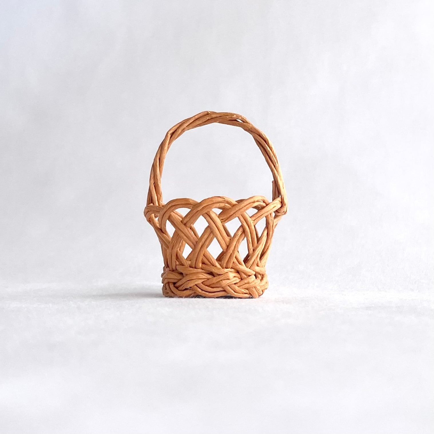 ミニチュア 透かし編みカゴバッグ / Miniature Openwork Basket with Handle / hinoki