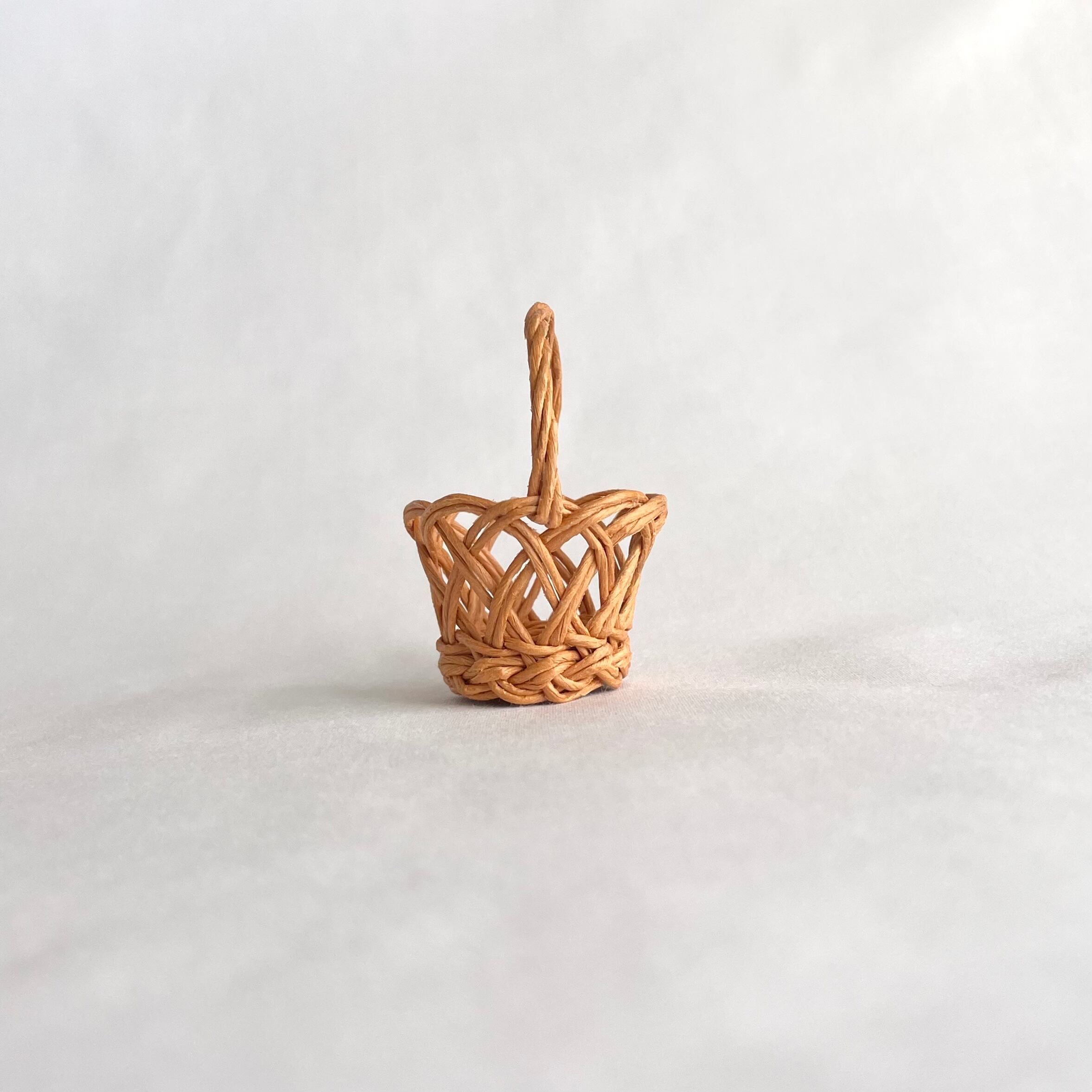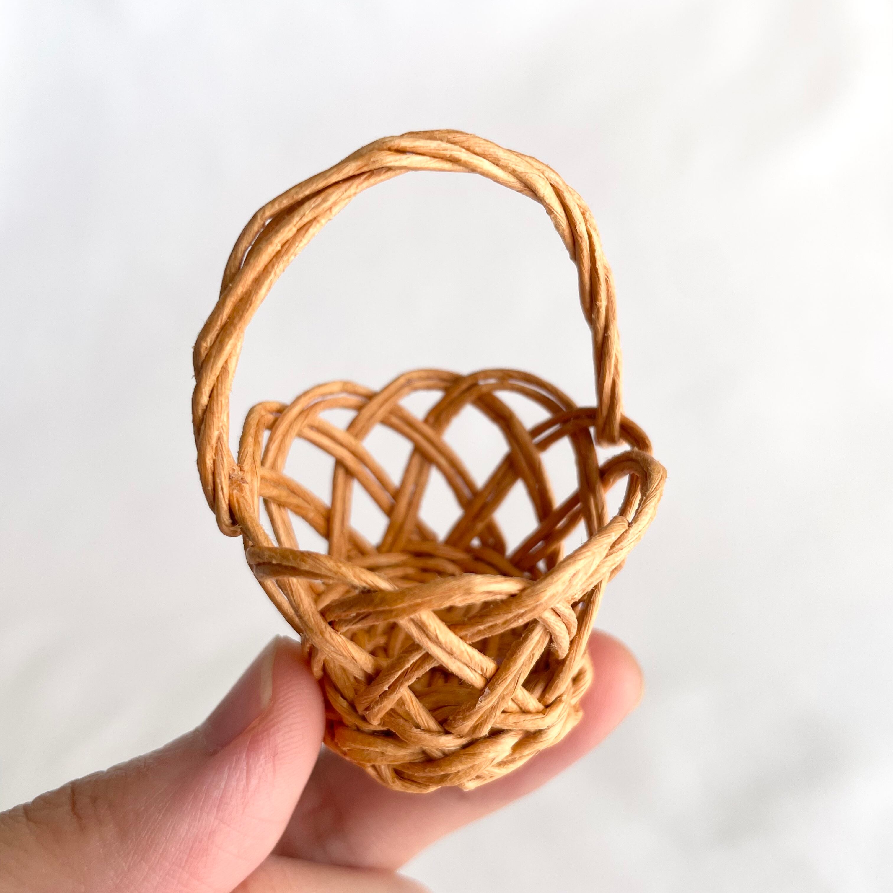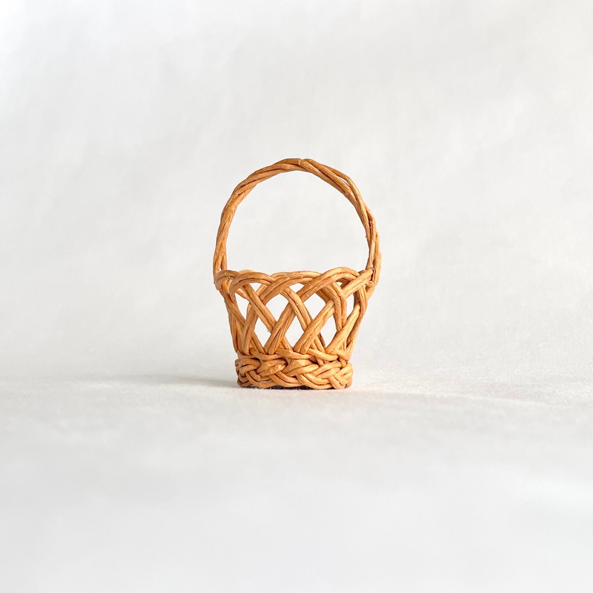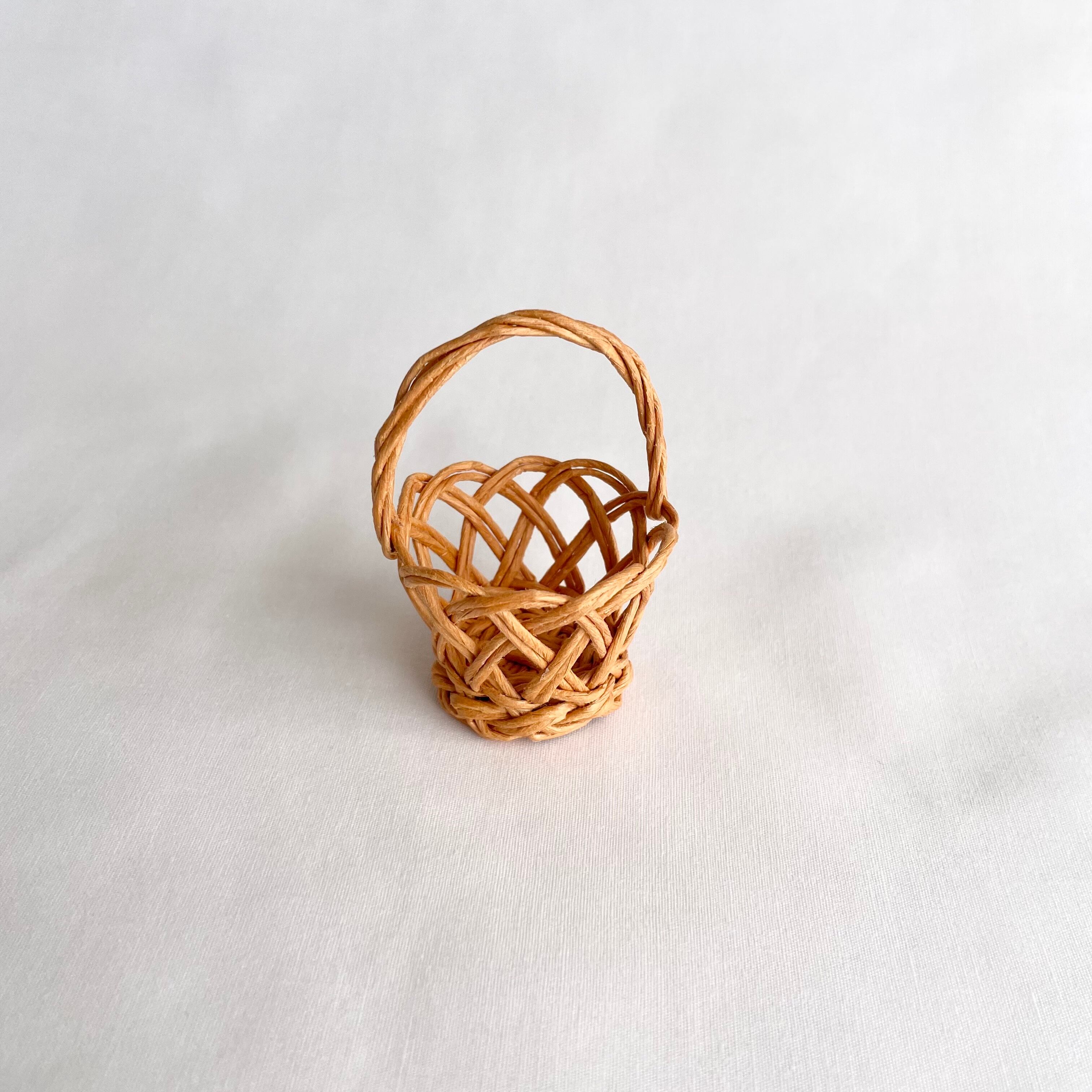 ◾️クラフトバンドを使って、ラタン風のミニチュアカゴバッグを編みました。細部までこだわって、丁寧に作り上げております。見る角度によってさまざまな表情を見られるところが、ポイントです。