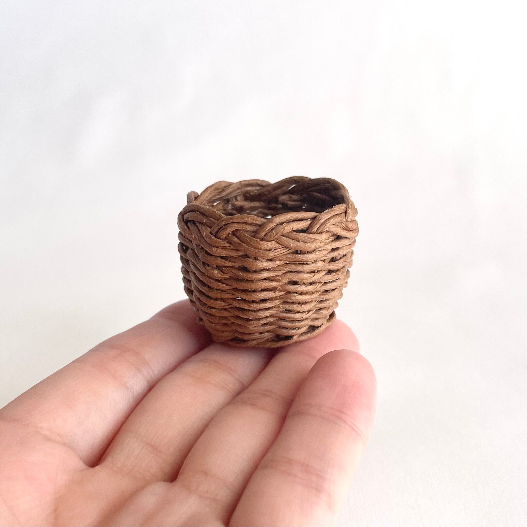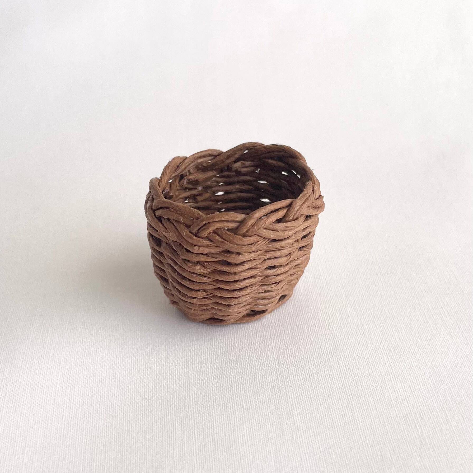 ◾️クラフトバンドを使って、ミニチュアのラタン風カゴを作りました。細部までこだわって、丁寧に作り上げております。縁の部分が三つ編み模様になっているところがポイントです。