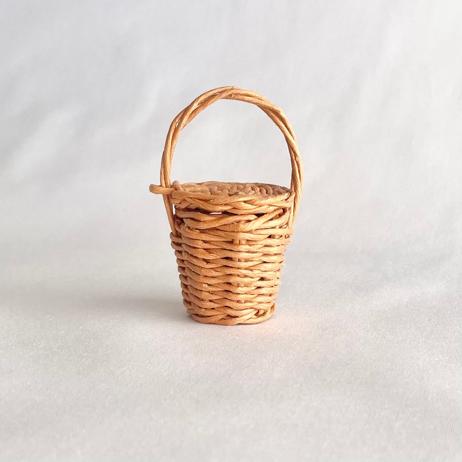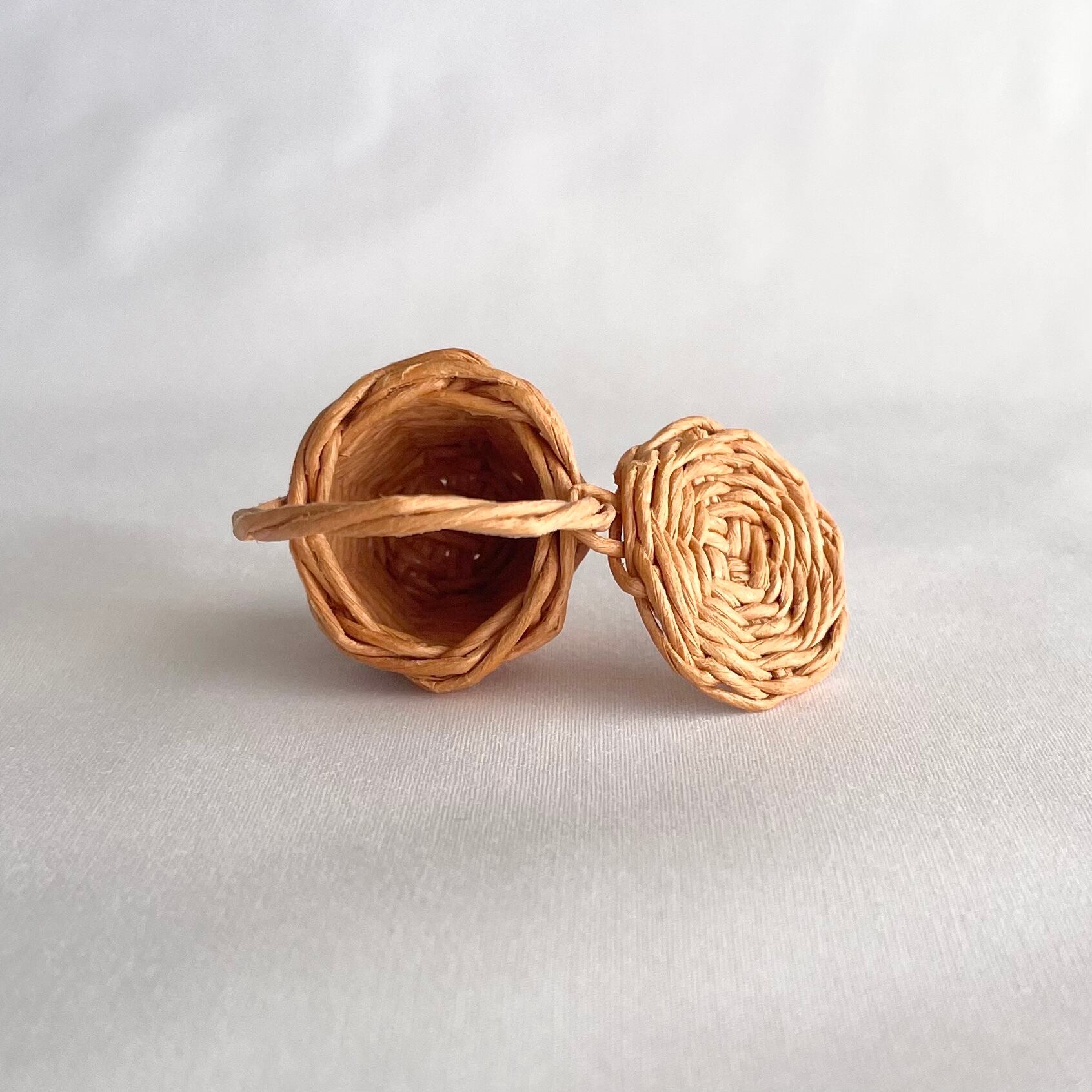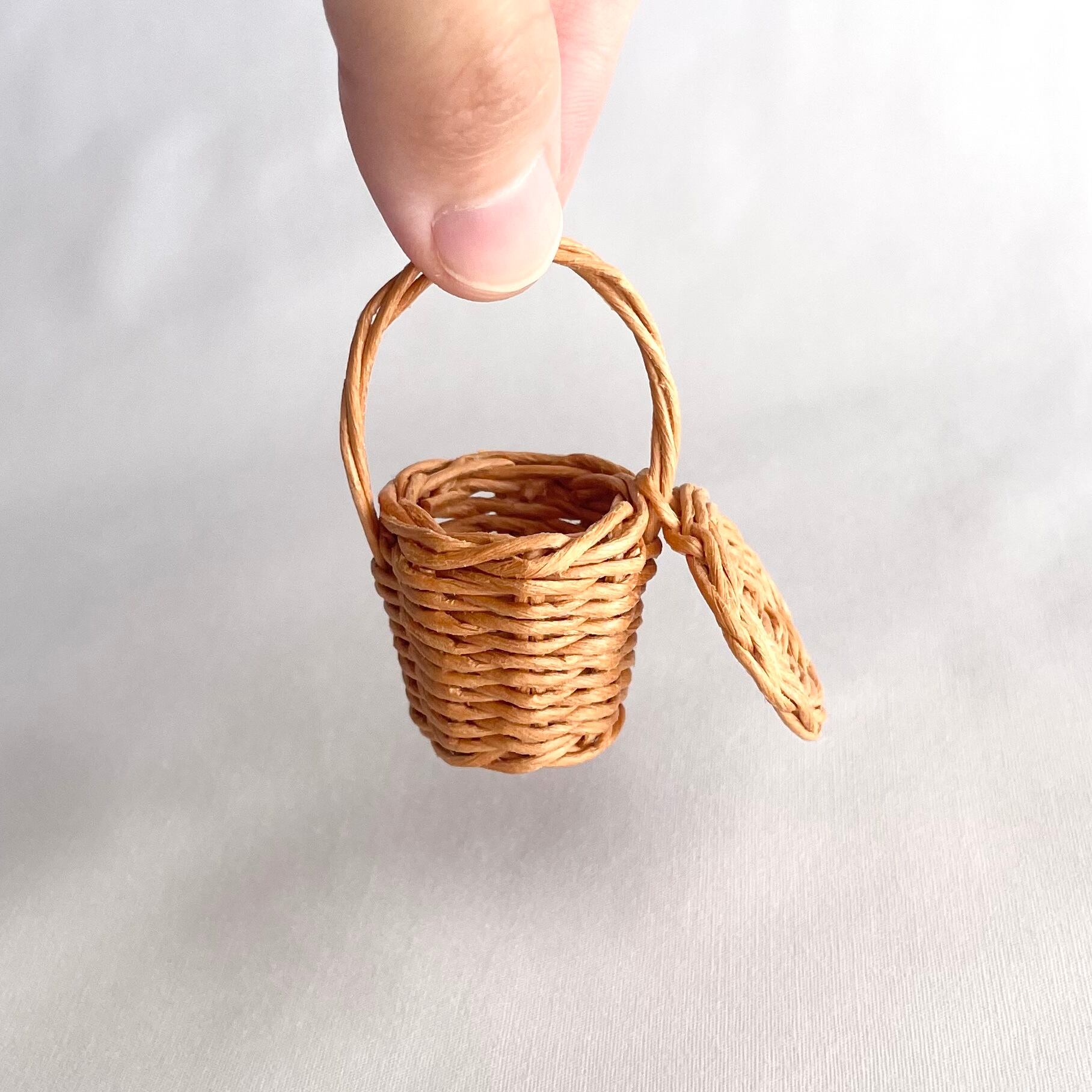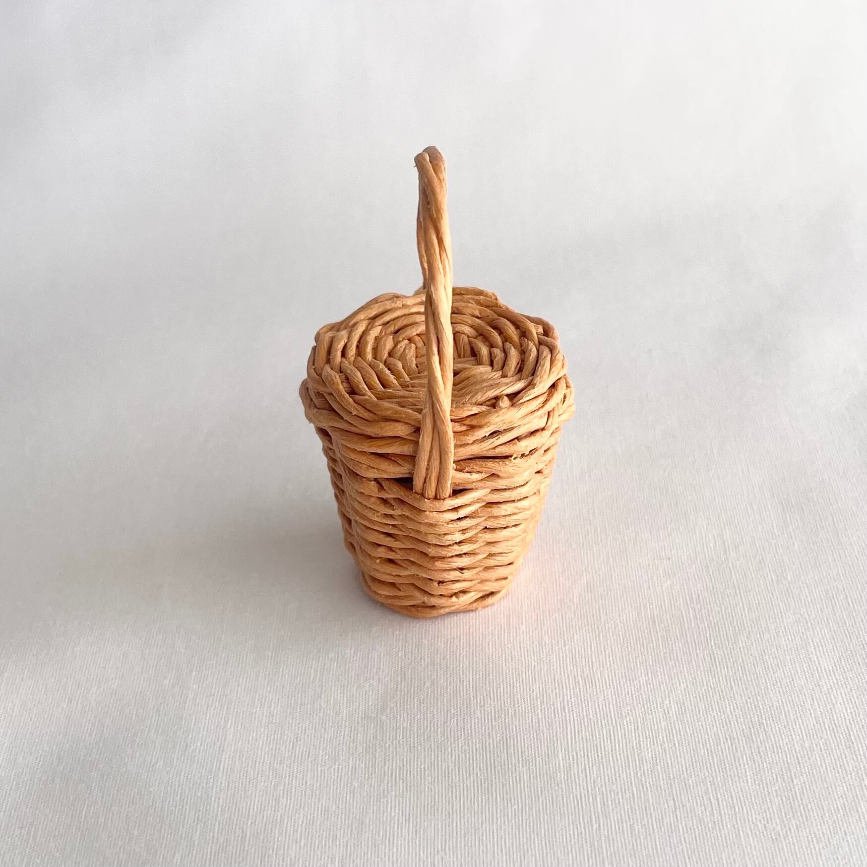 ◾️クラフトバンドを使って、ラタン風のミニチュア蓋付きワンハンドルバスケットを編みました。細部までこだわって、丁寧に作り上げております。蓋を閉めても開けても可愛らしいバスケットです。