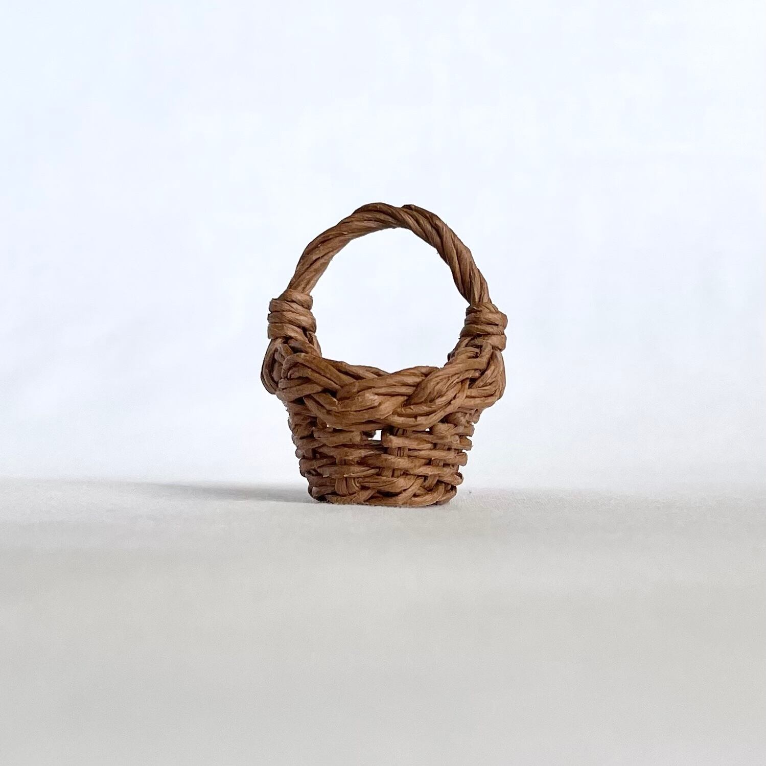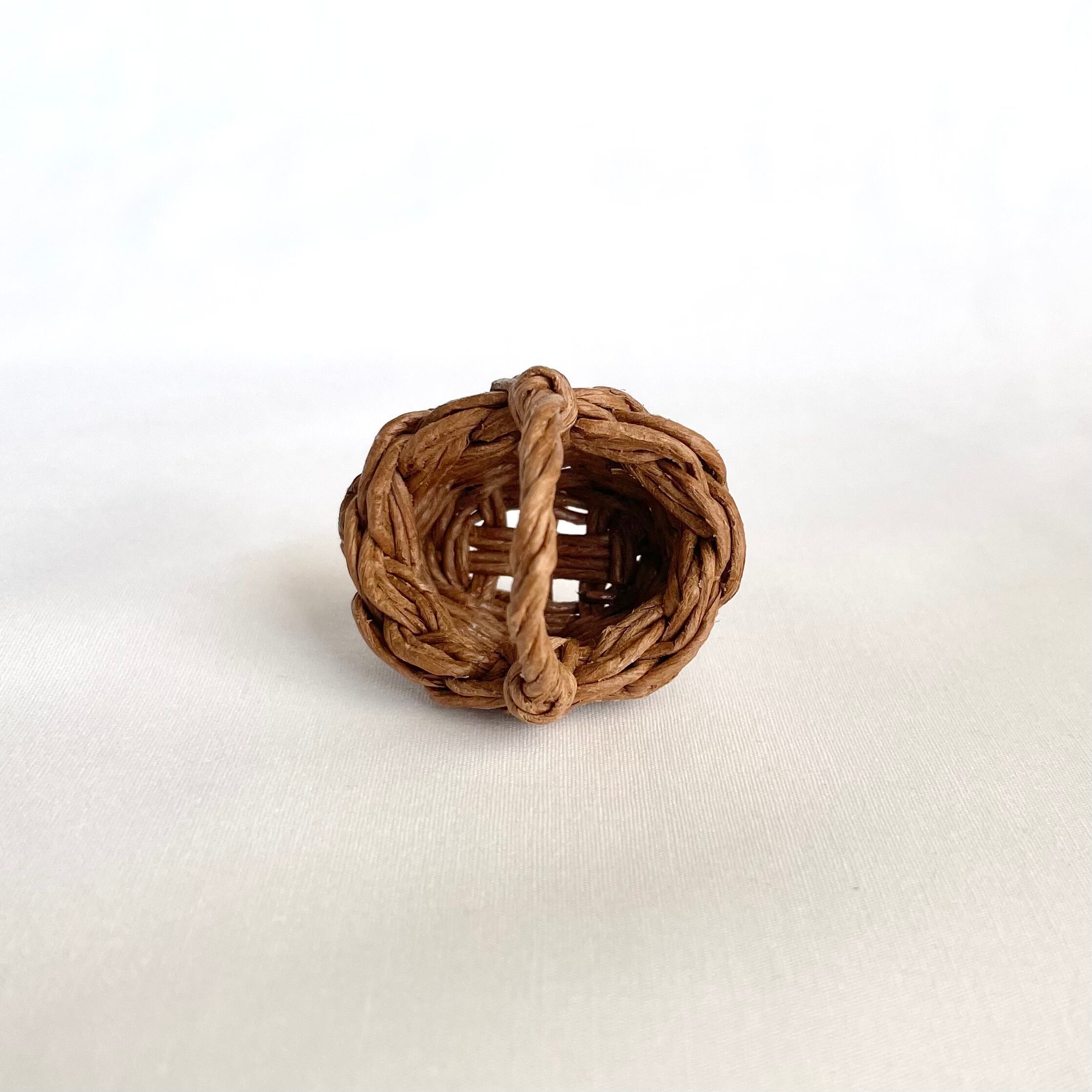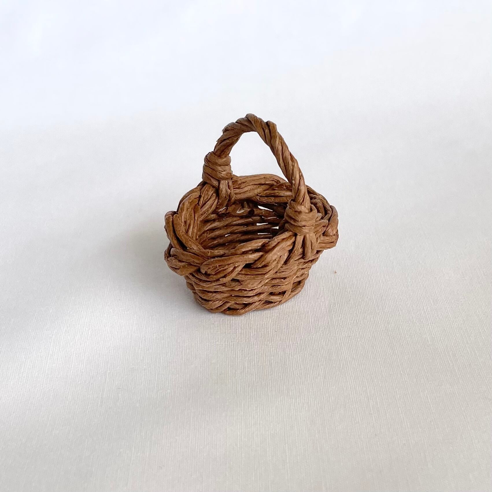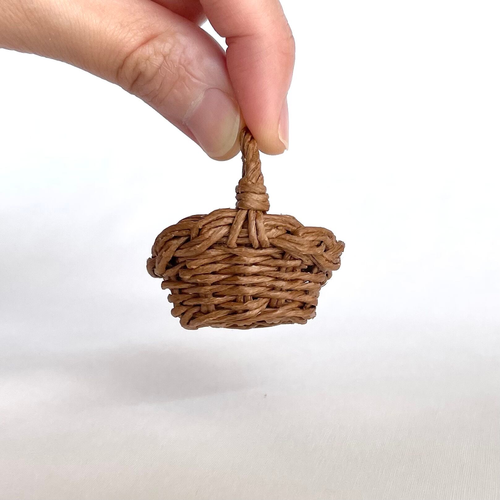 ◾️クラフトバンドを使って、ミニチュアのラタン風カゴバッグを編みました。細部までこだわって、丁寧に作り上げております。縁の表裏部分が三つ編み模様になっているところがポイントです。