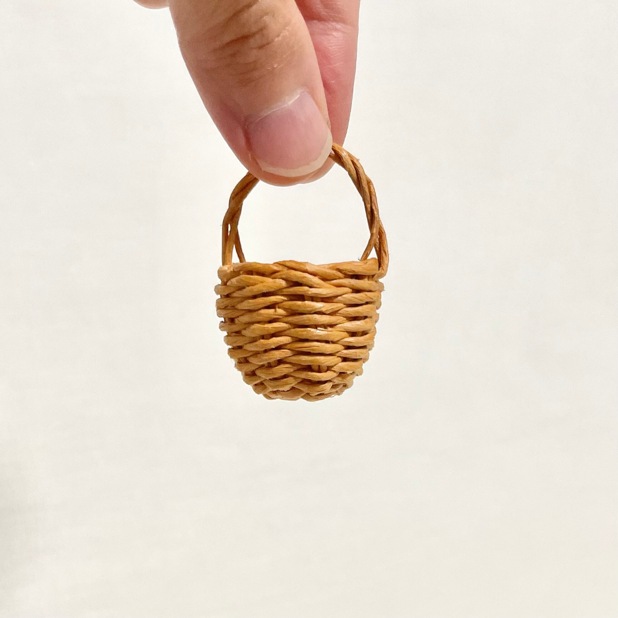 ◾️クラフトバンドを使って、ミニチュアのラタン風カゴバッグを編みました。細部までこだわって、丁寧に作り上げております。小さなサイズのシンプルな可愛らしいカゴバッグです。