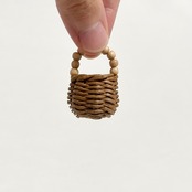 ◾️クラフトバンドを使って、ミニチュアのラタン風カゴバッグを編みました。細部までこだわって、丁寧に作り上げております。ショップ名のhinoki(桧・ひのき)にちなんで、持ち手部分にウッドビーズを使用しているところがポイントです。