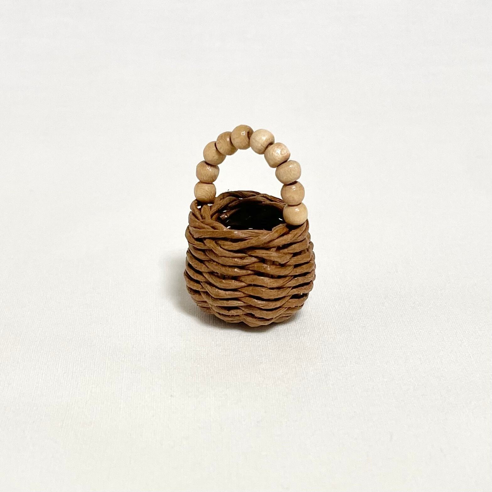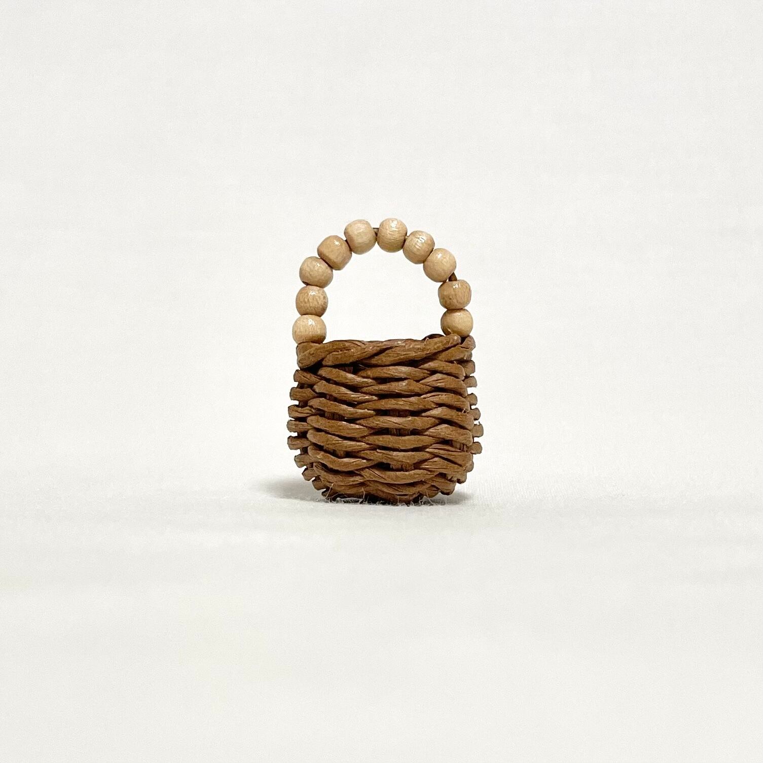 ミニチュア ウッドビーズハンドルカゴバッグ / Miniature Wood Beads Handle Basket / hinoki