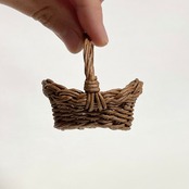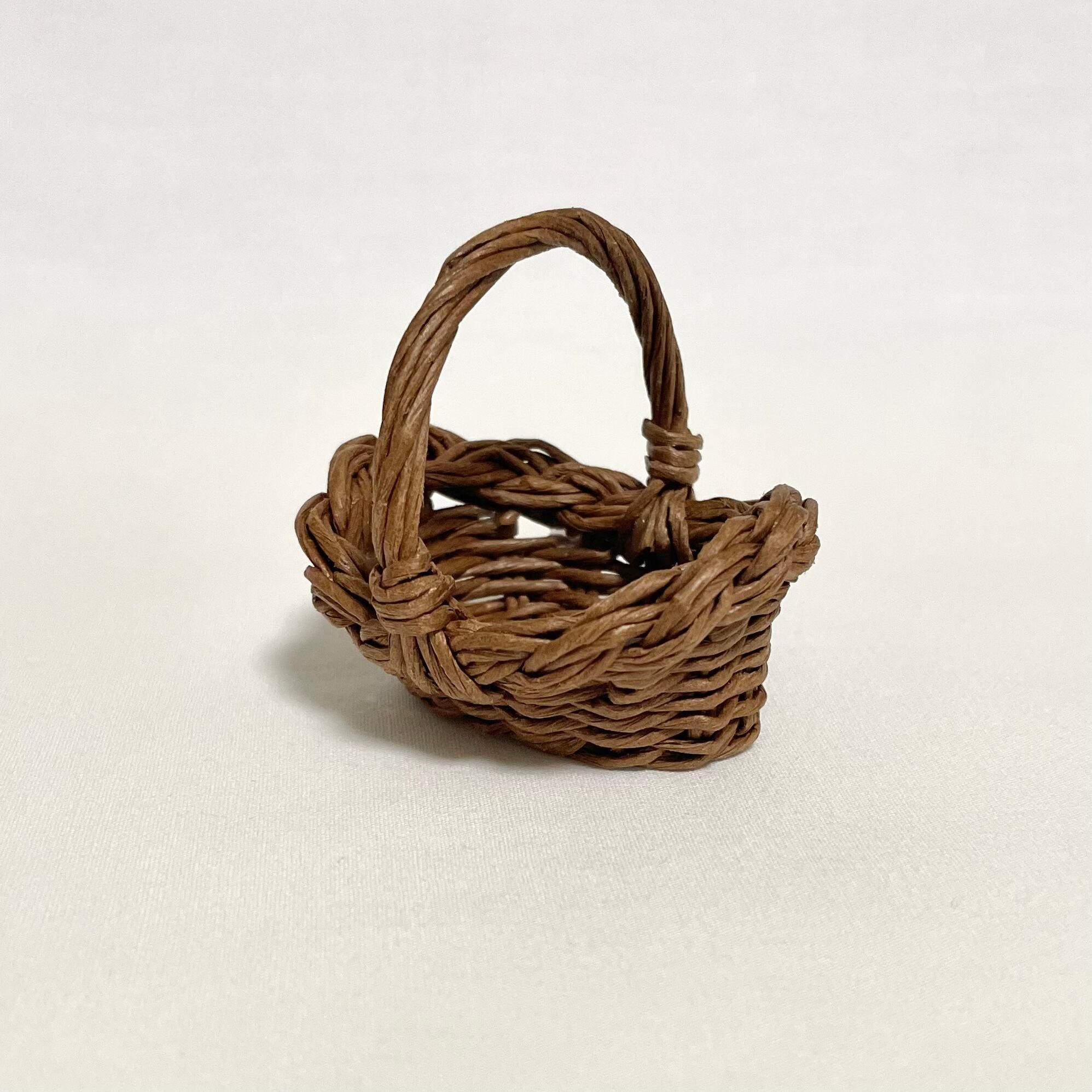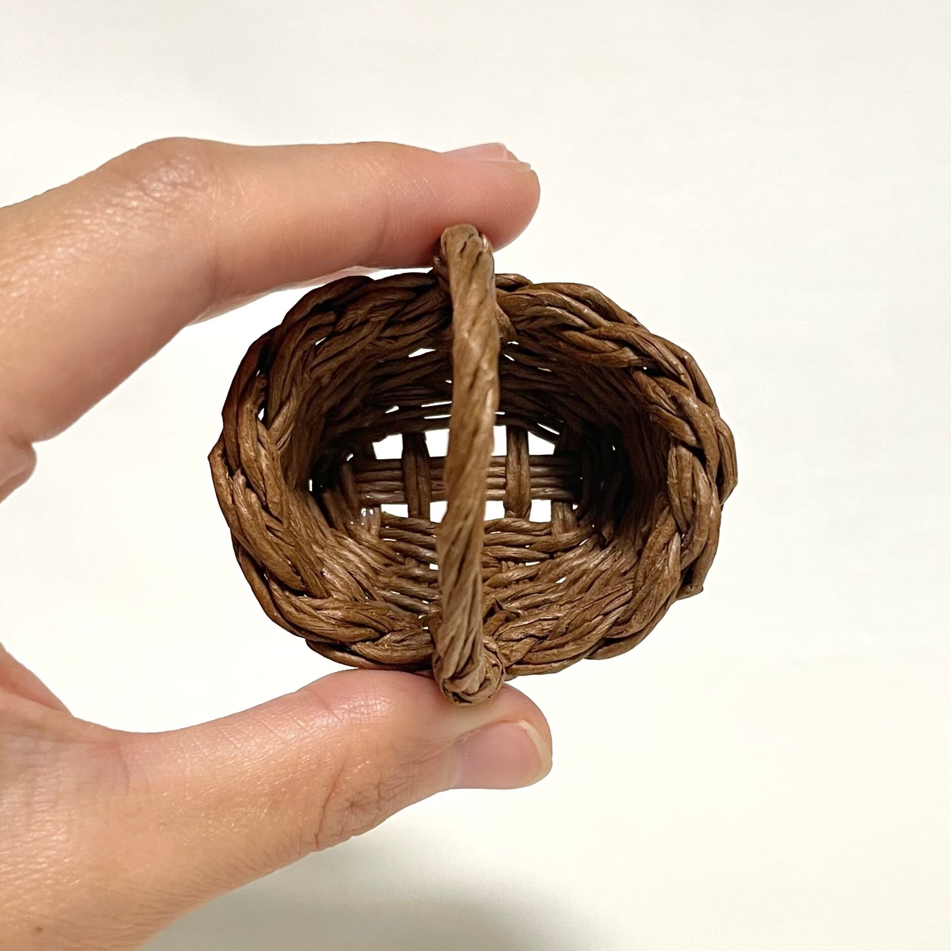 ◾️クラフトバンドを使って、ミニチュアのゆりかご型のカゴバッグを編みました。細部までこだわって、丁寧に作り上げております。縁の表裏部分が三つ編み模様になっているところがポイントです。
