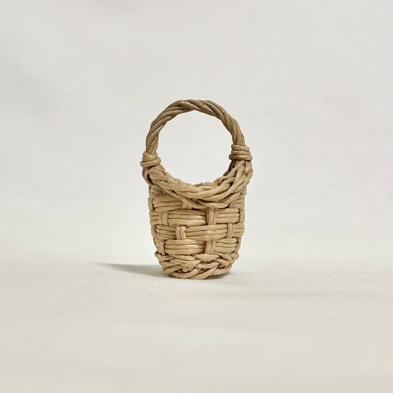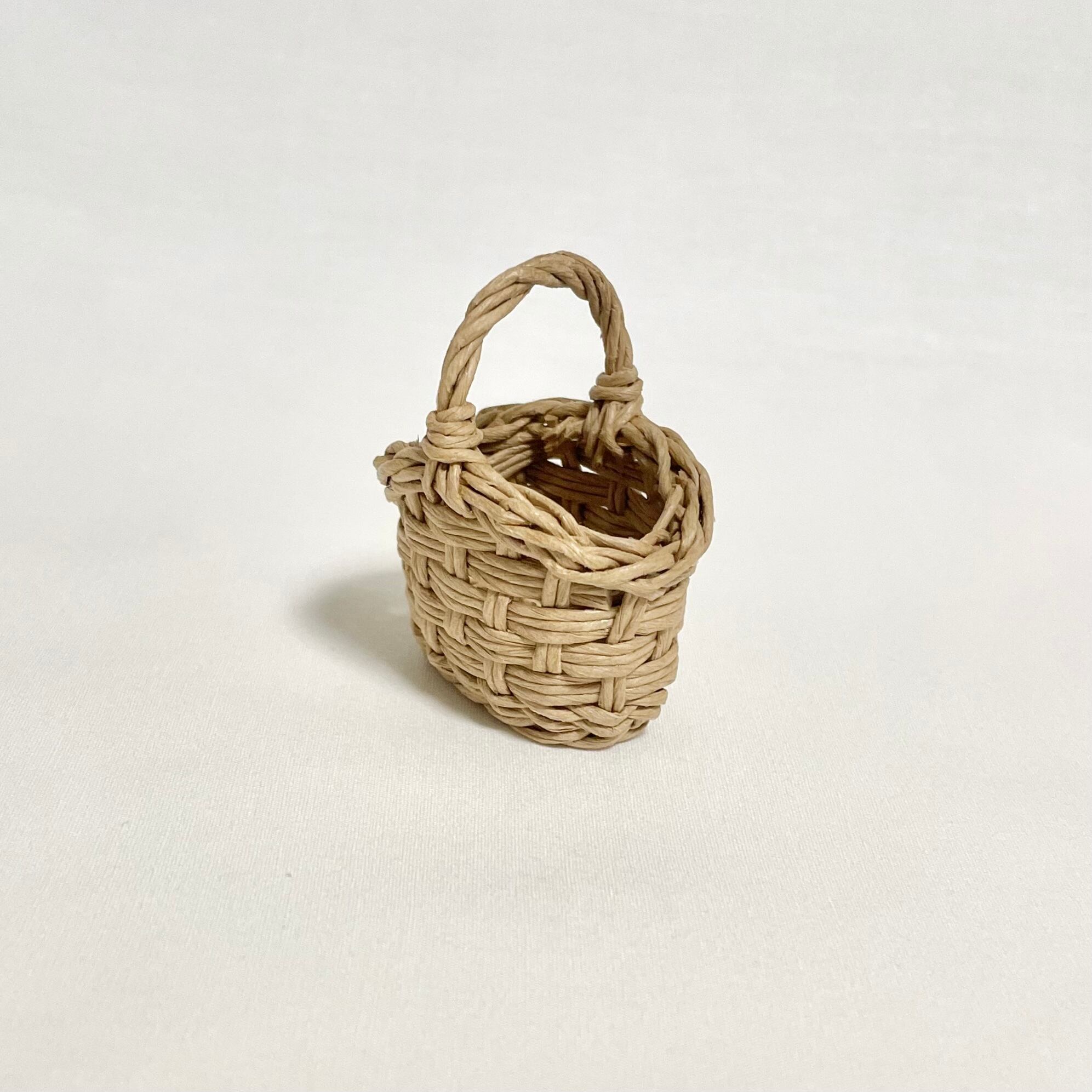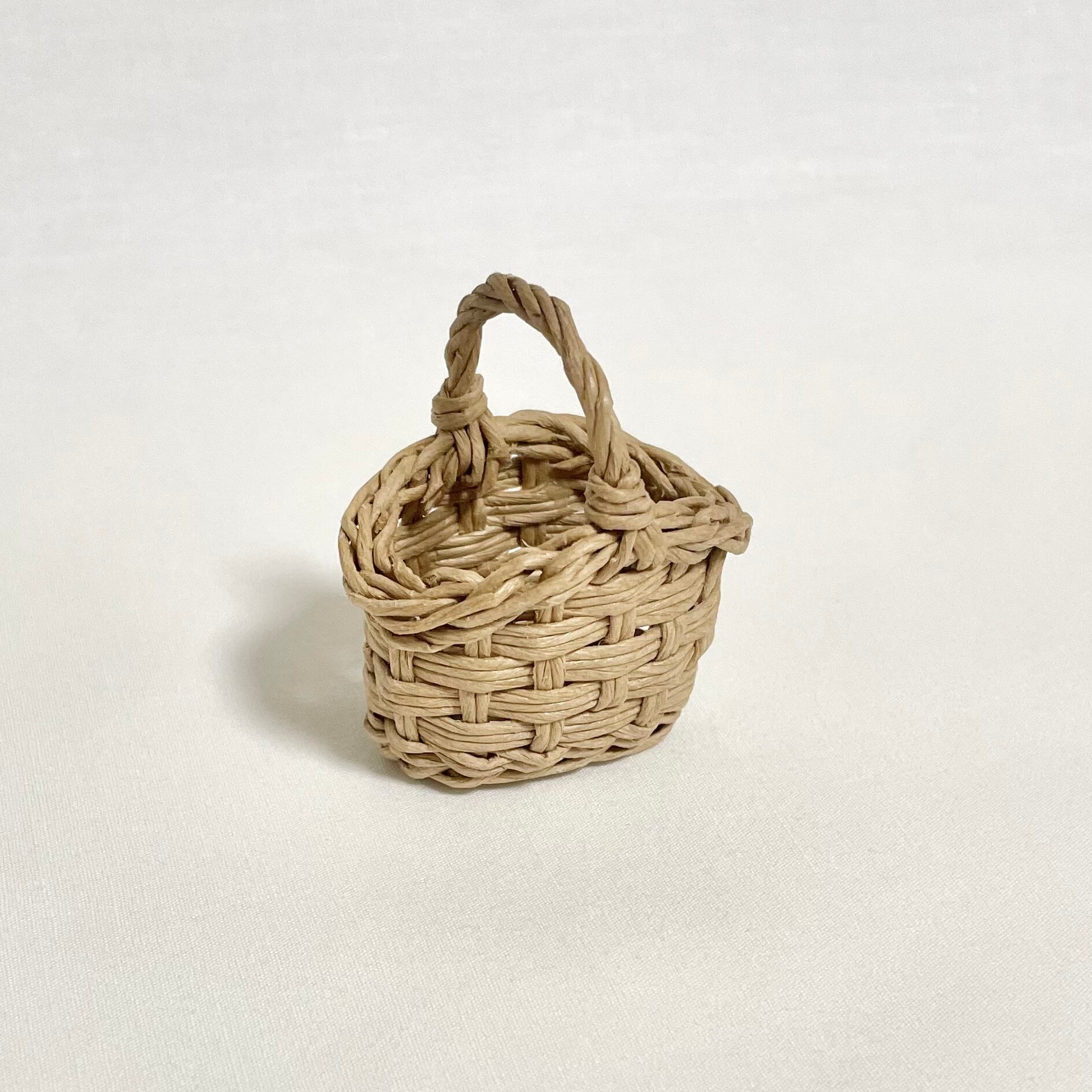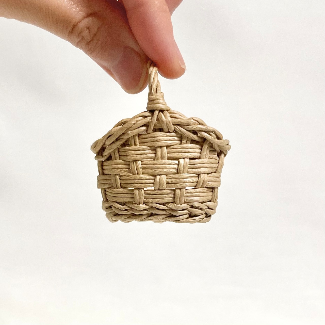 ◾️クラフトバンドを使って、ミニチュアのラタン風カゴバッグを編みました。ざっくりとした編み方がポイントで、細部までこだわって丁寧に作り上げております。また、丸みを帯びたフォルムが可愛らしさを演出しています。