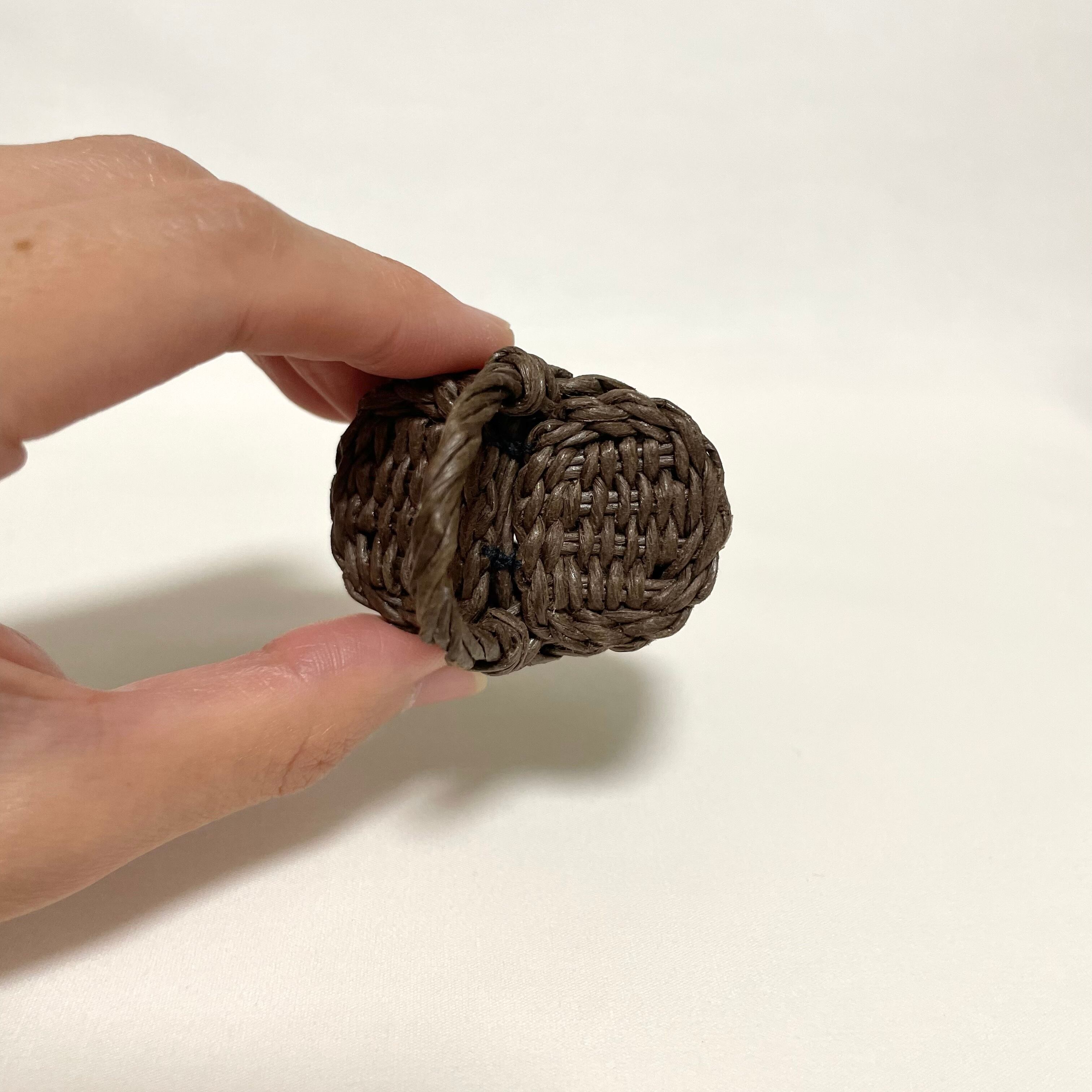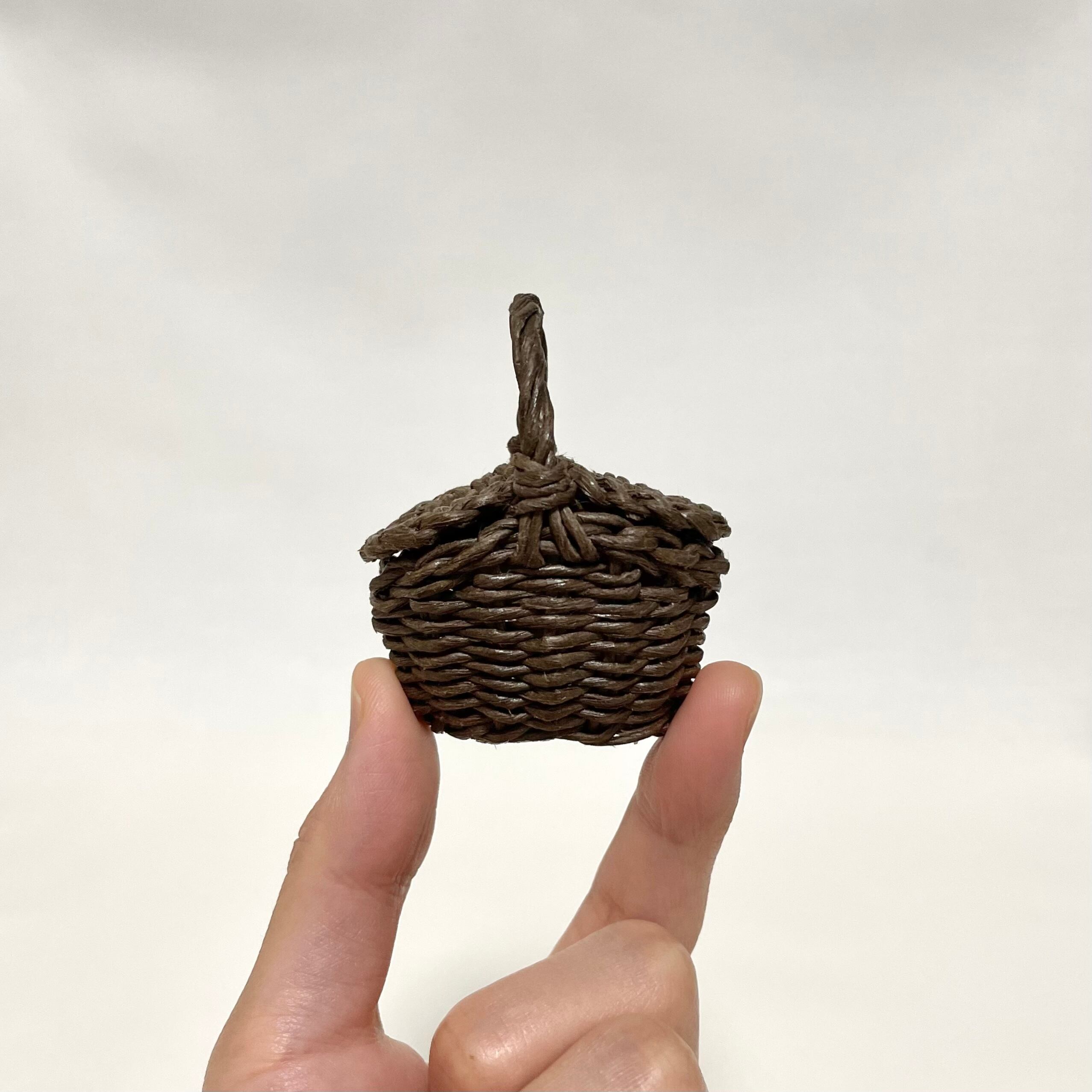 ◾️クラフトバンドを使って、ミニチュアのピクニックバスケットを細部までこだわって編みました。家のような形になっているところがポイントです。
