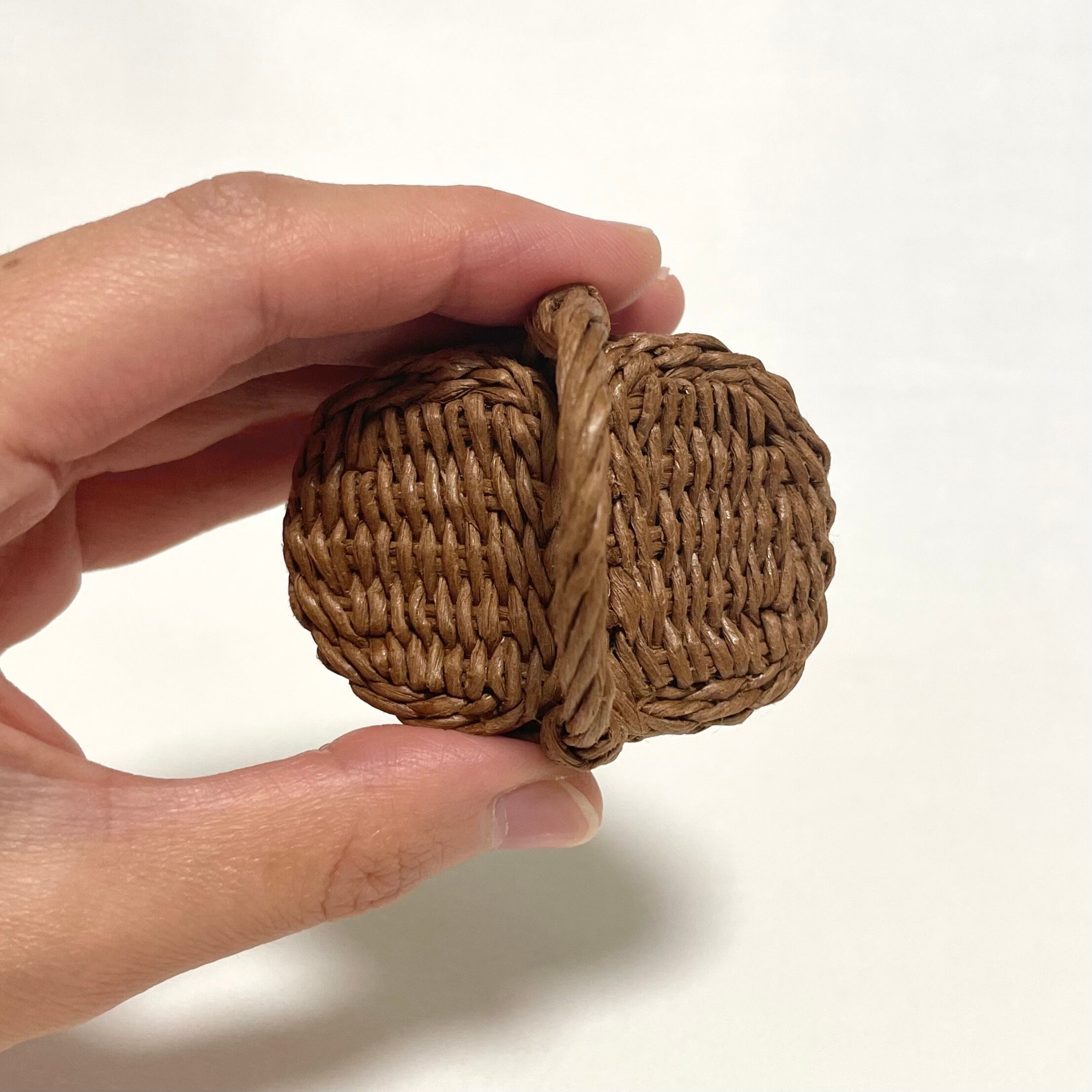 ◾️クラフトバンドを使って、ミニチュアのピクニックバスケットを細部までこだわって編みました。家のような形になっているところがポイントです。