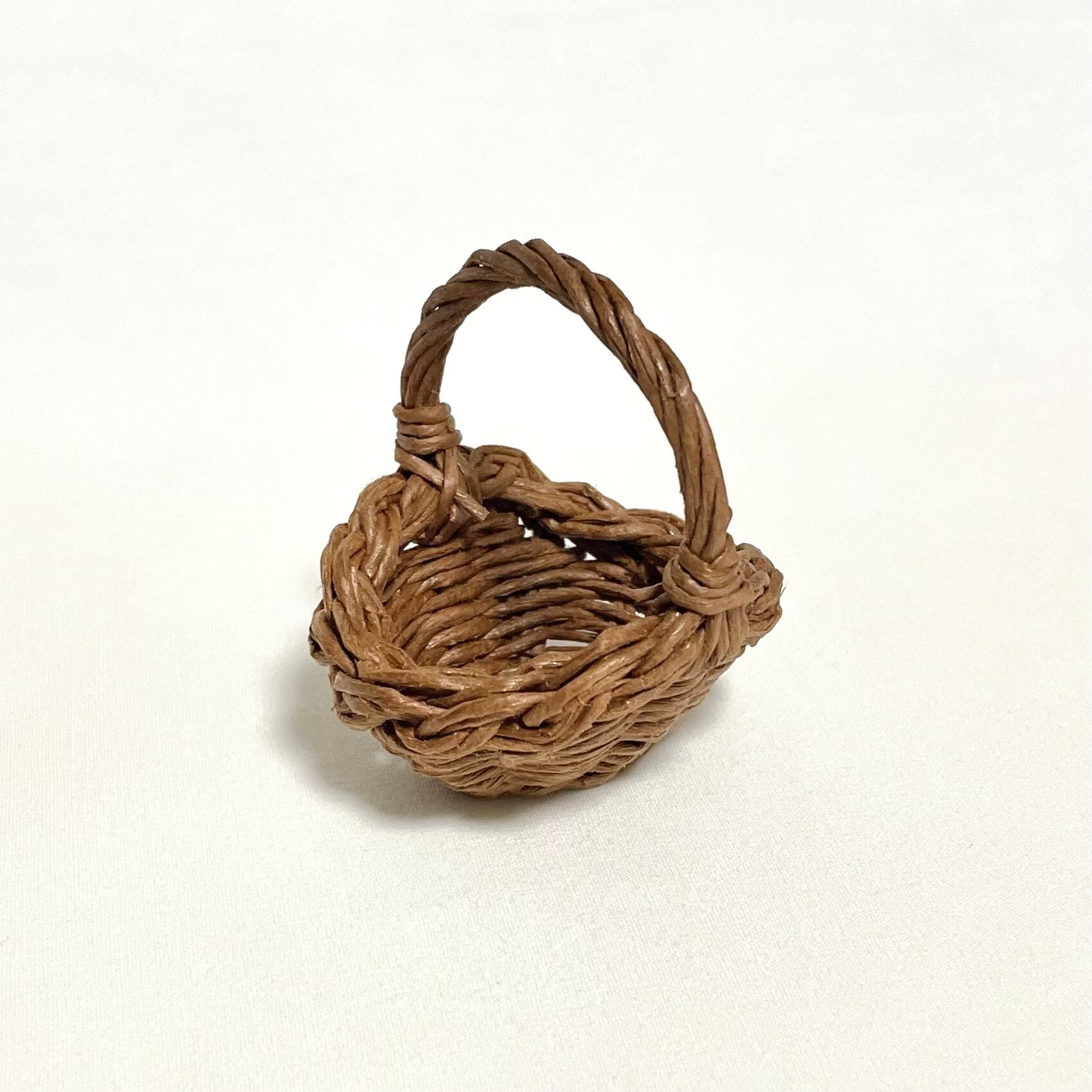 山なり三つ編みカゴバッグ ミニチュア / Miniature Braid Basket with Handle / hinoki