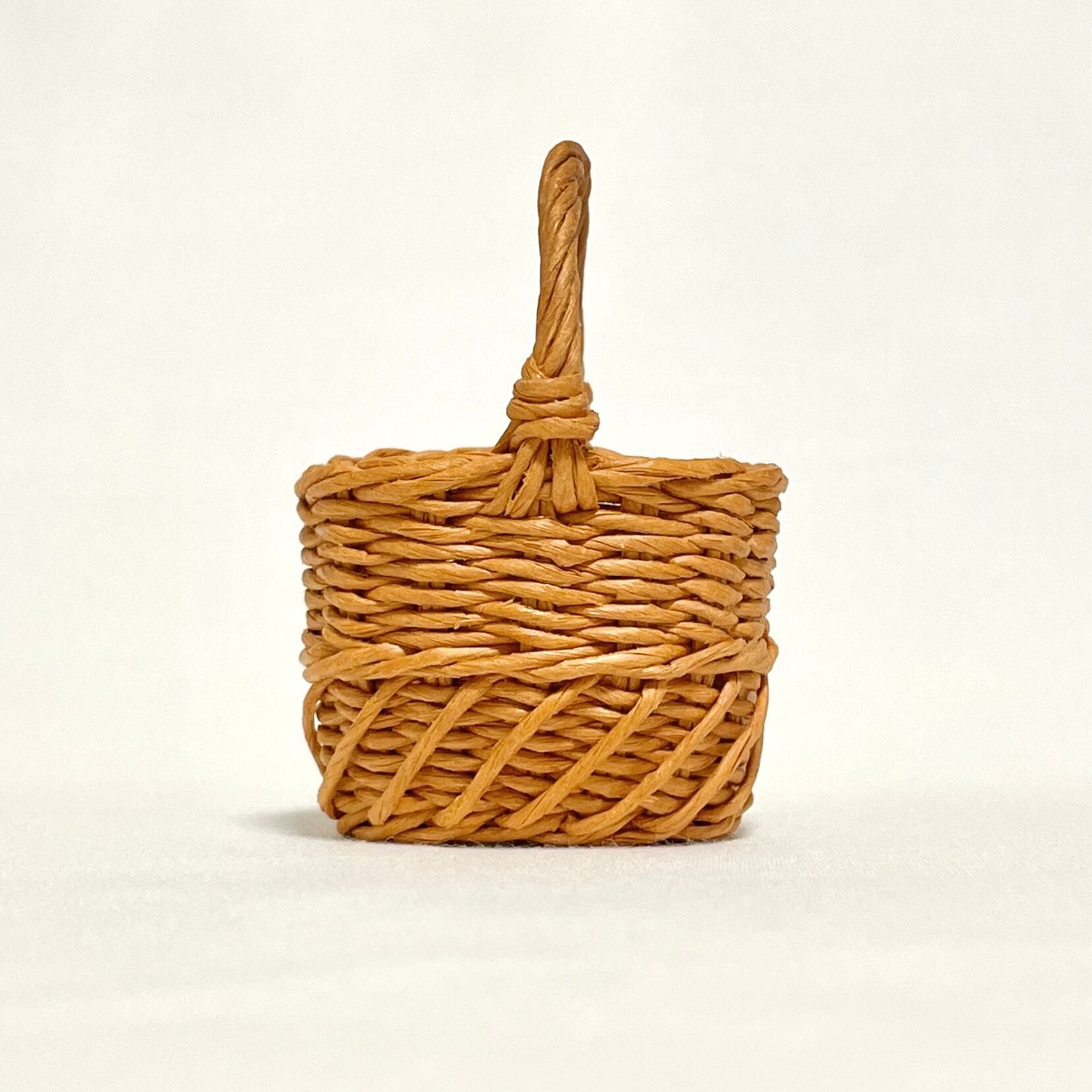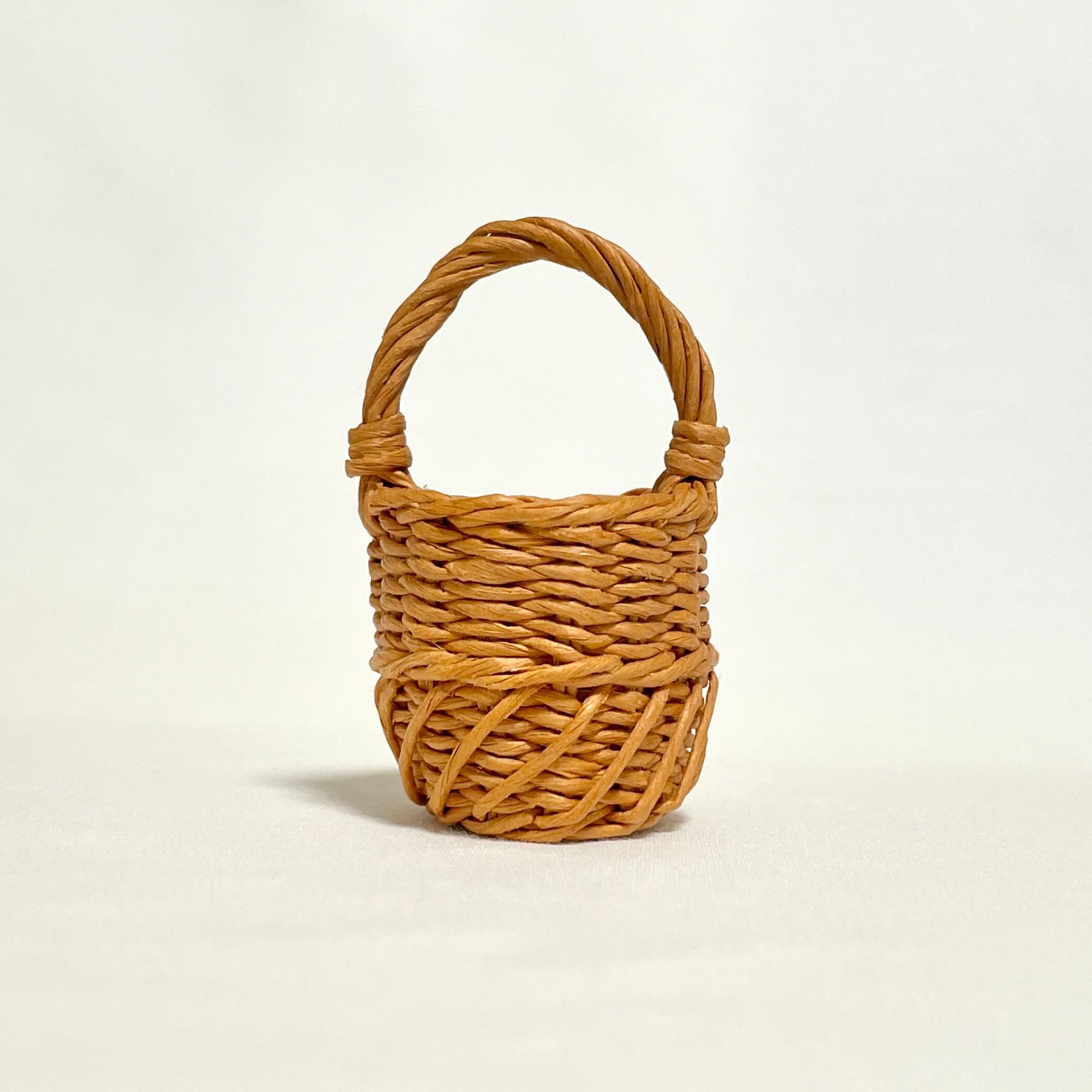 ◾️クラフトバンドを使って、ミニチュアのラタン風カゴバッグを編みました。細部までこだわって、丁寧に作り上げております。斜めのストライプ柄を入れたところがポイントです。